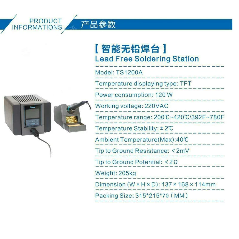 Новинка 220 в 120 Вт QUICK TS1200A интеллектуальная сенсорная Бессвинцовая паяльная станция Электрический Железный антистатический паяльник