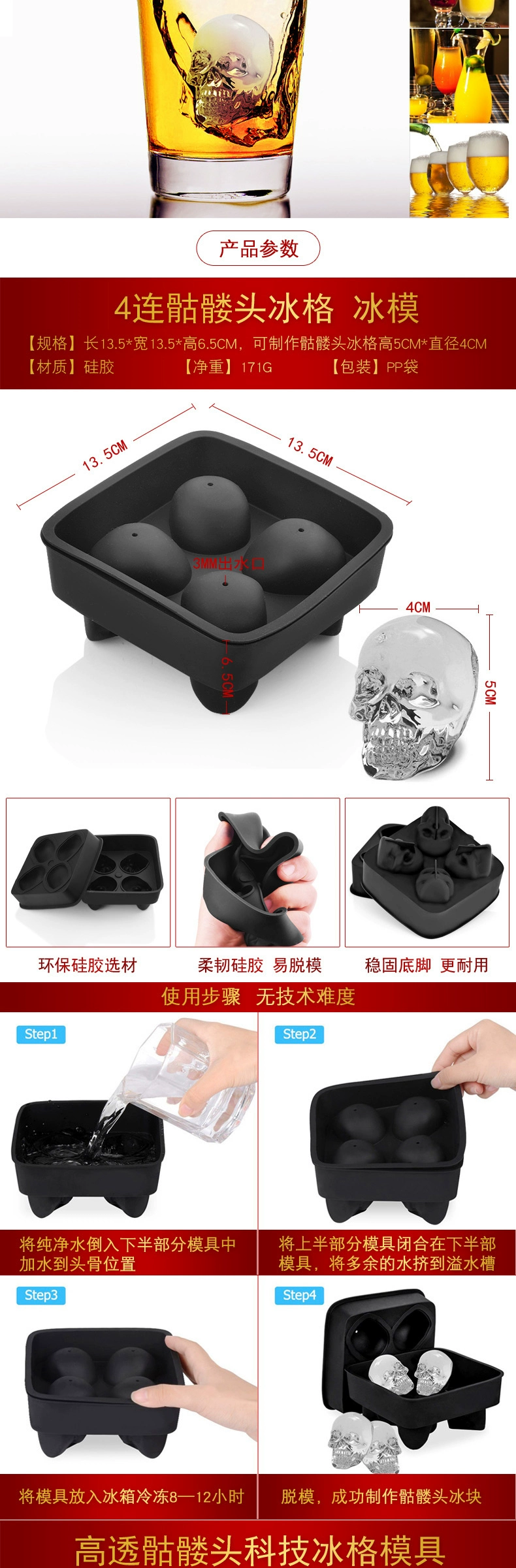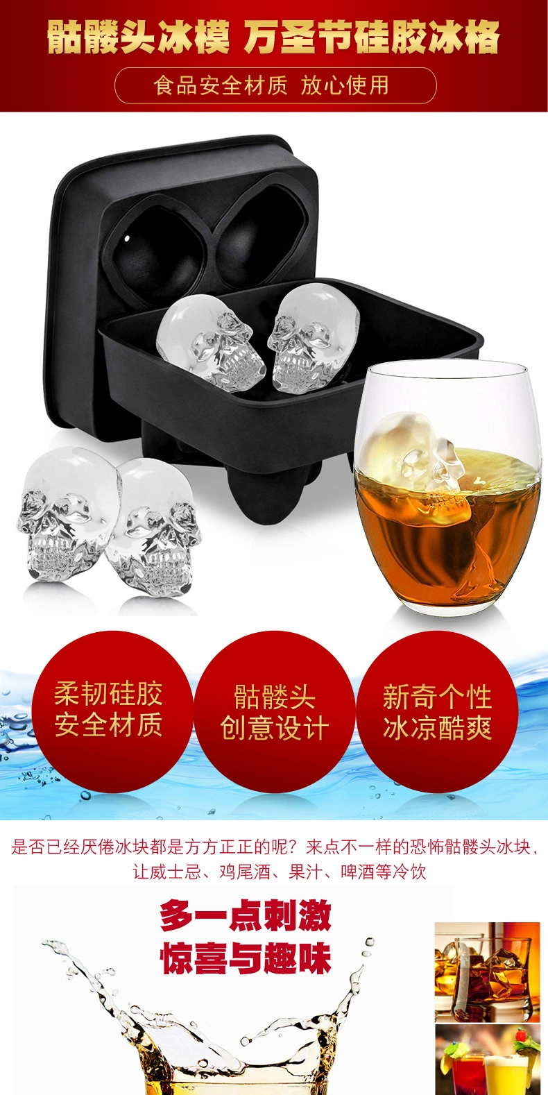 Новая и забавная игрушка, силиконовая модель черепа, лед, сделай сам, форма для шоколада, аксессуары для Хэллоуина, подарок для мальчика и ребенка