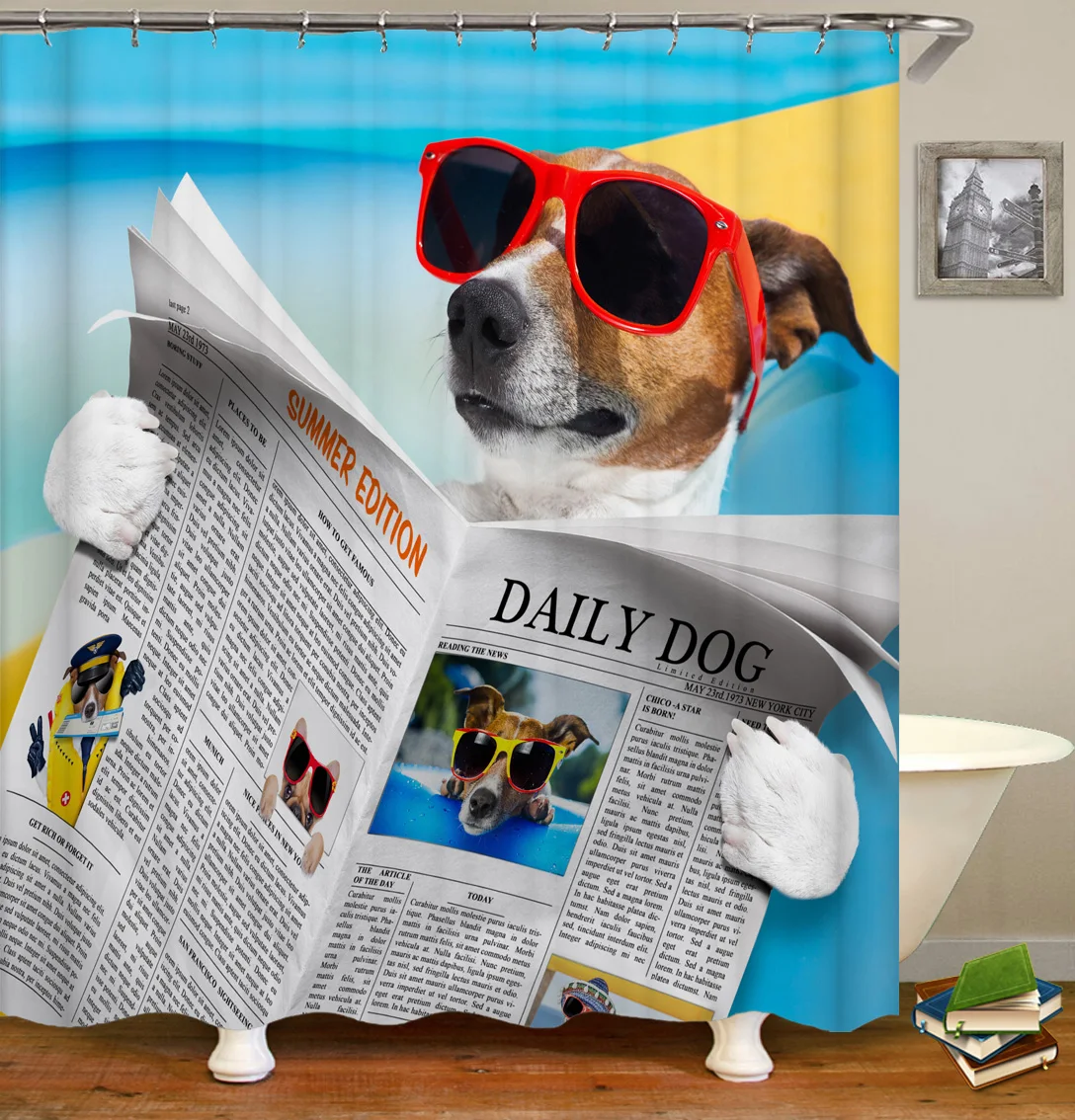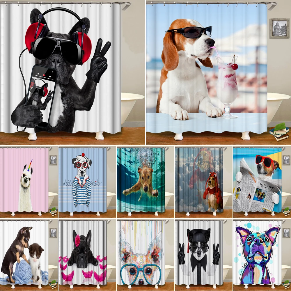 Занавеска для душа с 12 крючками, водонепроницаемая занавеска для ванной из полиэстера, с рисунком собаки, забавная сэлфи-занавеска для ванной комнаты