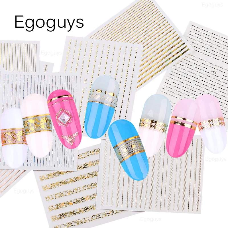 Геометрические 3D металлические наклейки для ногтевого дизайна, поз...