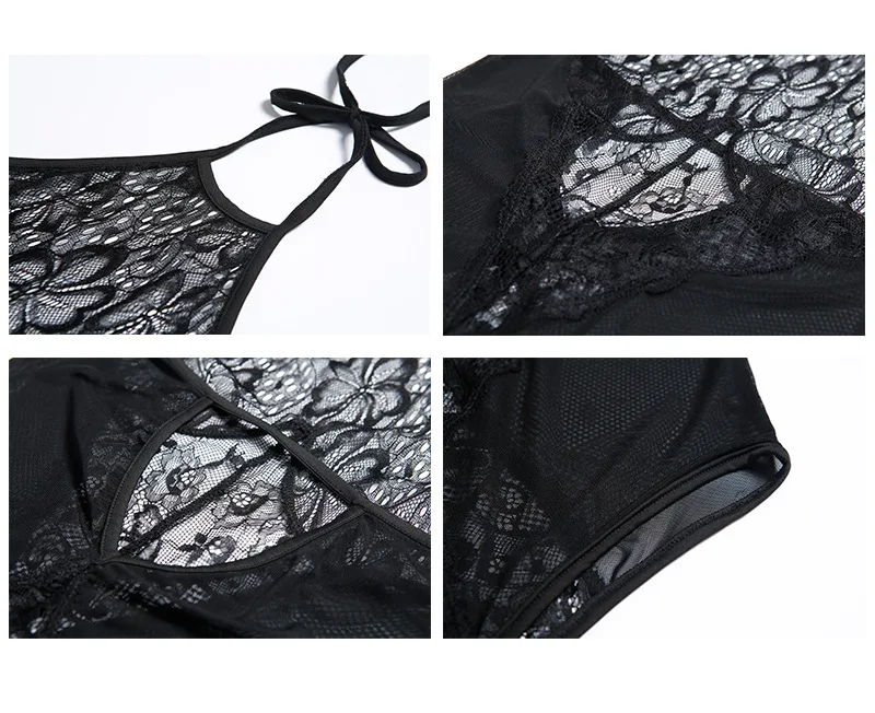 Летнее женское сексуальное женское белье боди Ночное белье с лямкой на шее стрейч боди Прозрачное нижнее белье кружевное Прозрачное нижнее белье черного цвета сеточкой, экзотический сексуальный одежда