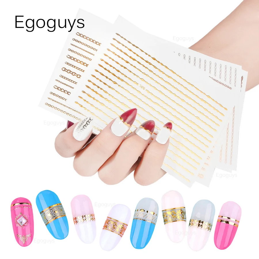 1 шт. лазерная Золотая Серебряная розовая 3D металлическая наклейка для ногтей своими руками Геометрическая прямая цепочка изогнутая лента Волнистая Полоса декоративные наклейки