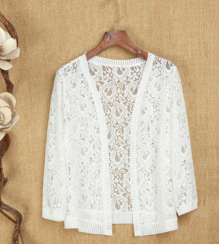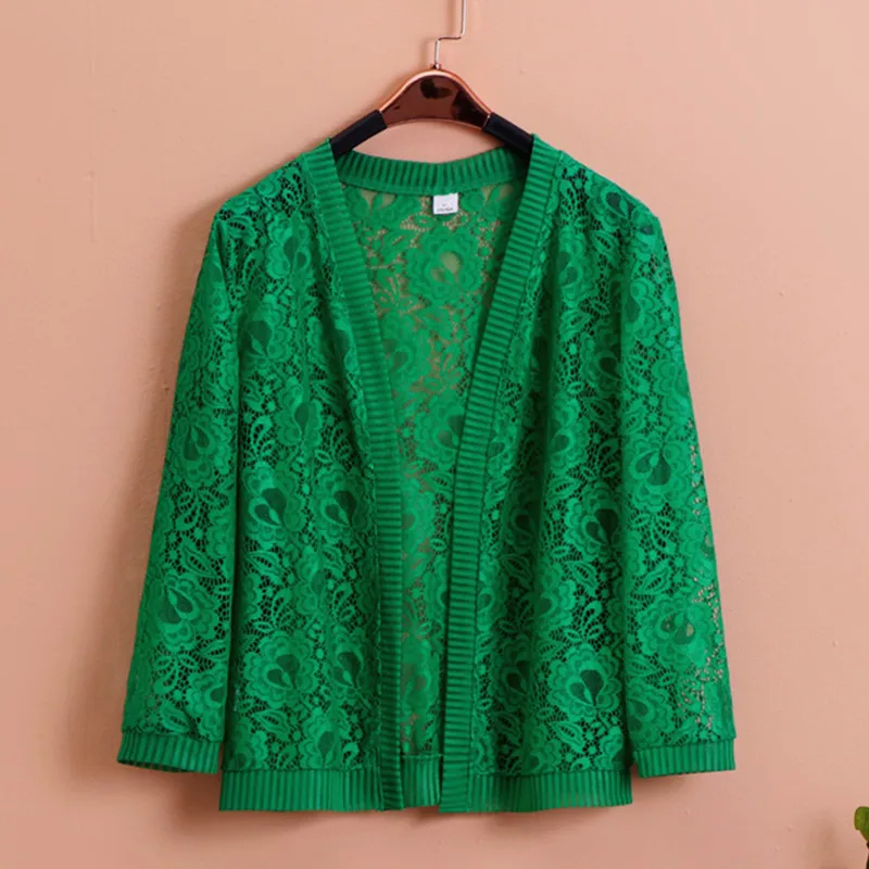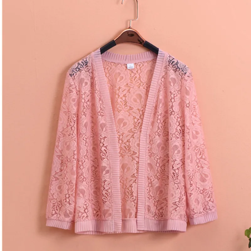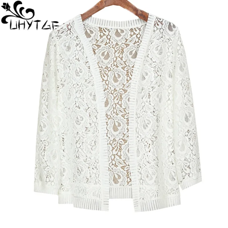 Трикотажный кардиган UHYTGF, летнее пальто, женская модная тонкая блестящая шаль 7XL, однотонная необычная Элегантная короткая кофта 1676