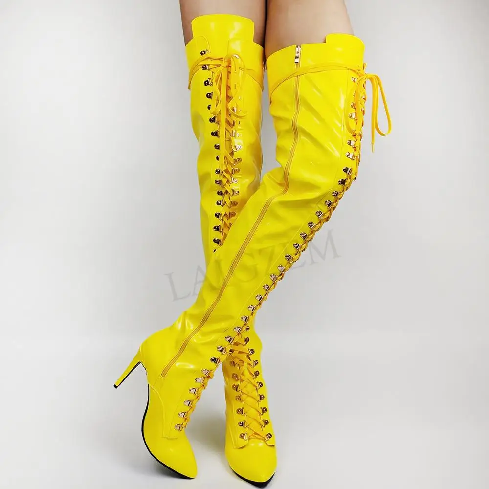 SEIIHEM/женские ботфорты выше колена на шпильке, на шнуровке, с боковой молнией; Пикантная обувь; Женская обувь; Большие размеры 43, 44, 45, 46, 47