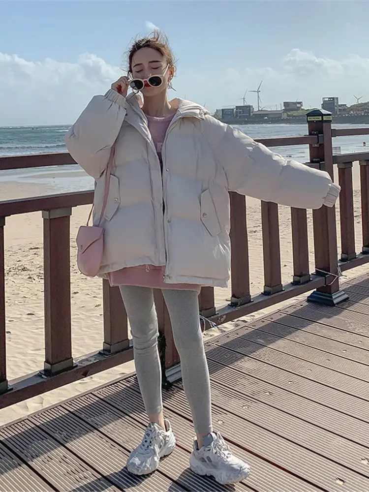 Женские зимние куртки-пуховики оверсайз, корейские свободные пальто...
