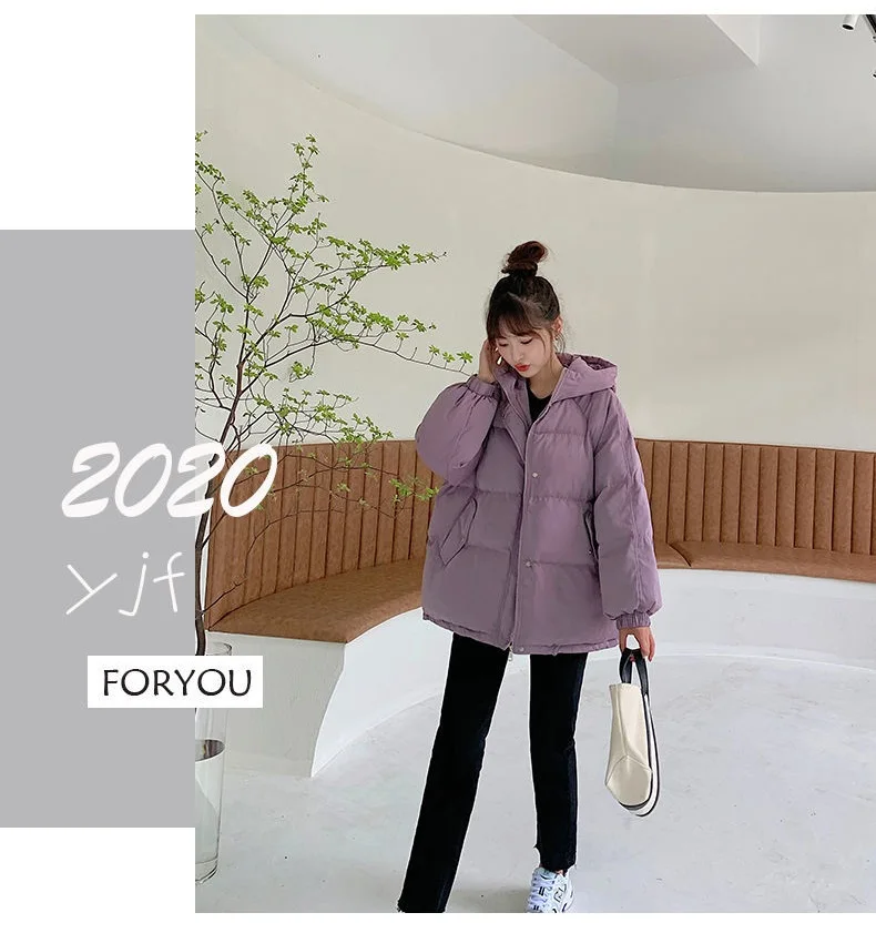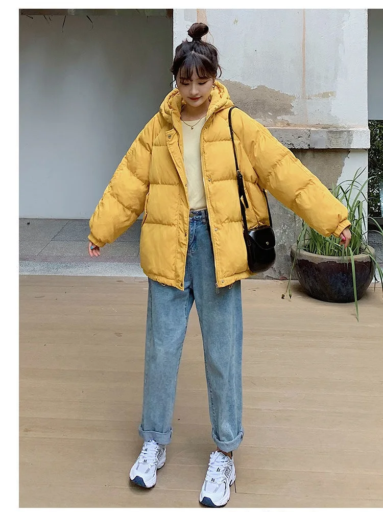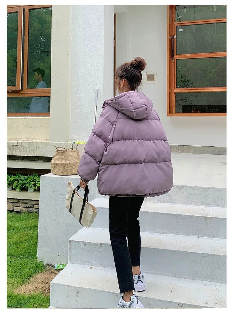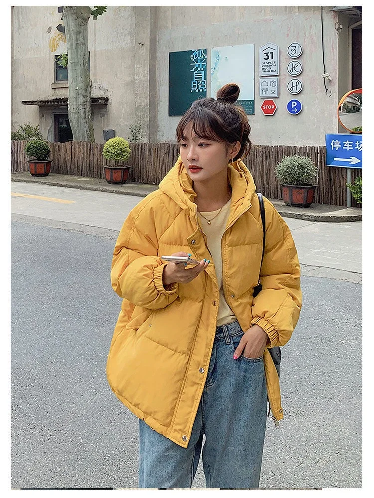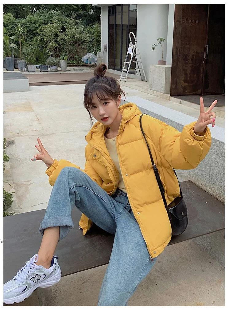 Куртка женская утепленная с капюшоном, однотонная пуховая куртка оверсайз в Корейском стиле, черная белая, свободная короткая парка, зима 2021