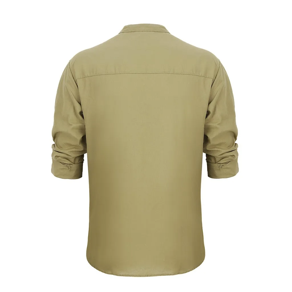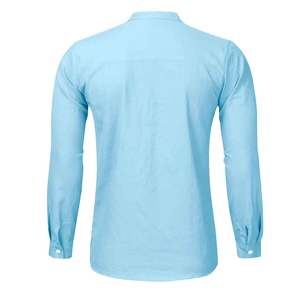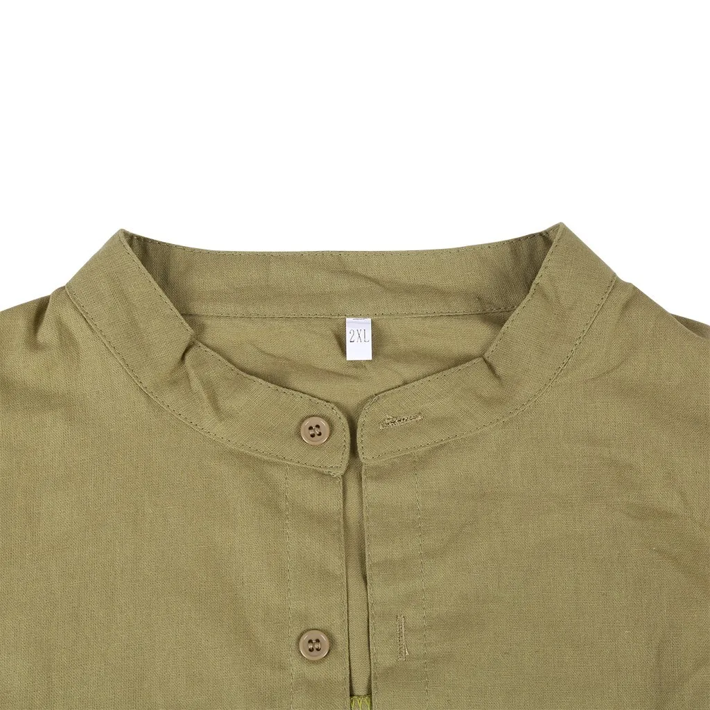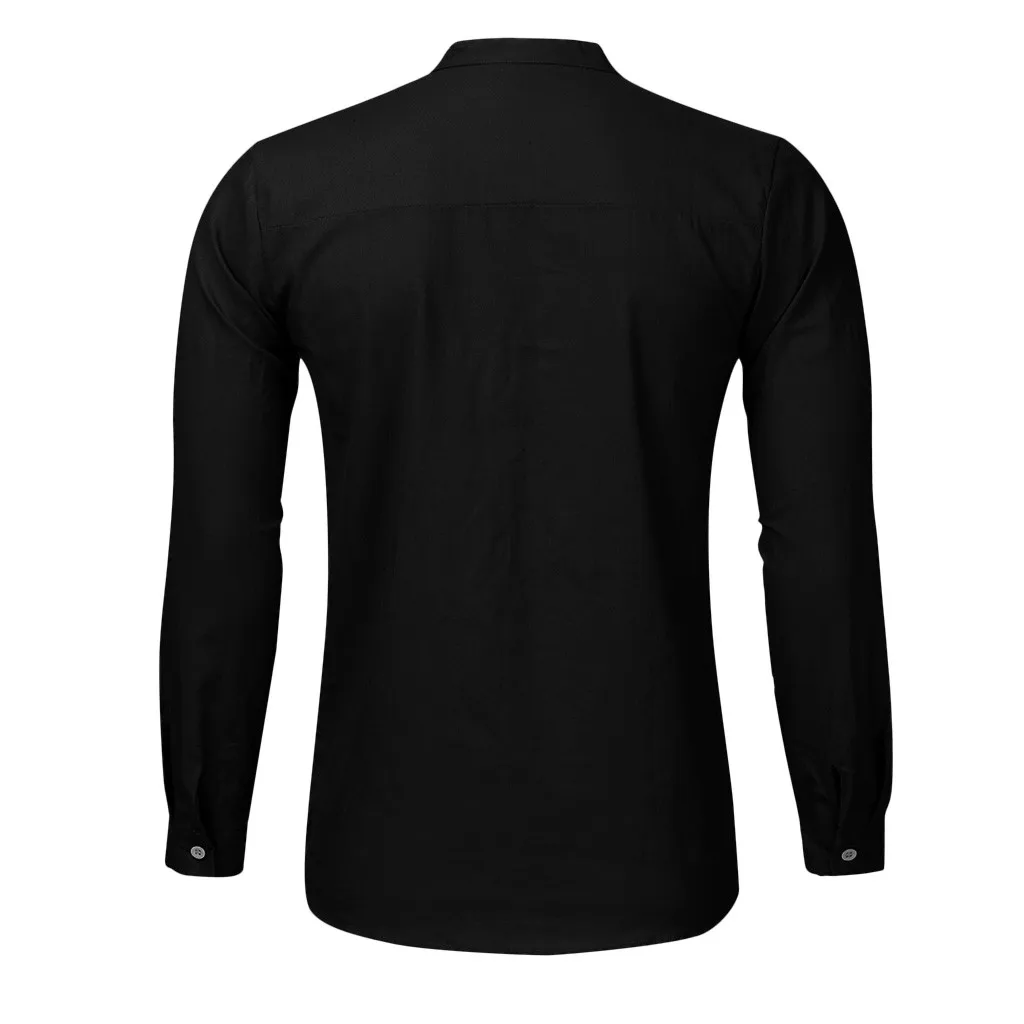 Футболка мужская, с V-образным вырезом, на пуговицах, однотонная, большого размера, с длинным рукавом, 35 #