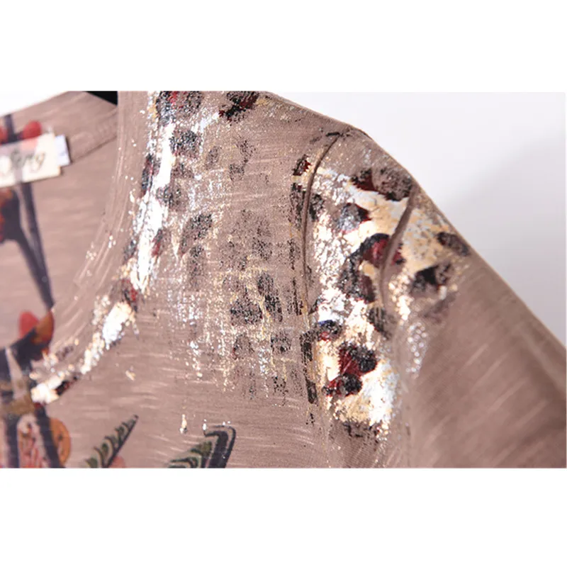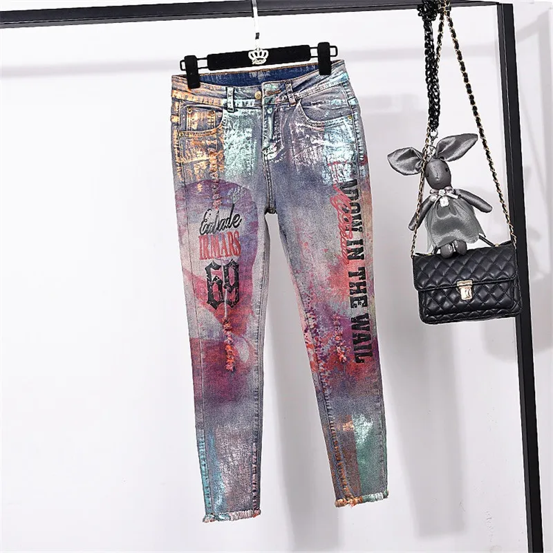 Женский джинсовый костюм, летняя футболка с винтажным принтом, джинсовые брюки-карандаш, комплект из 2 предметов, свободная футболка с коротким рукавом, уличная одежда