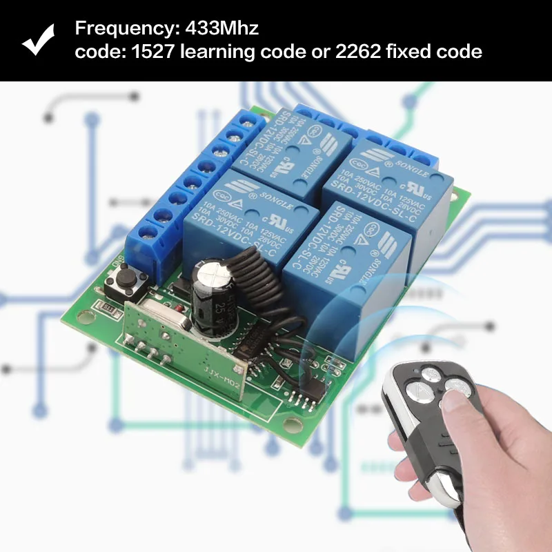 Универсальный беспроводной Радиочастотный приемник и передатчик для гаражабагажника автомобилямотора, 433 МГц, 12 В, 10 А, 4 канала