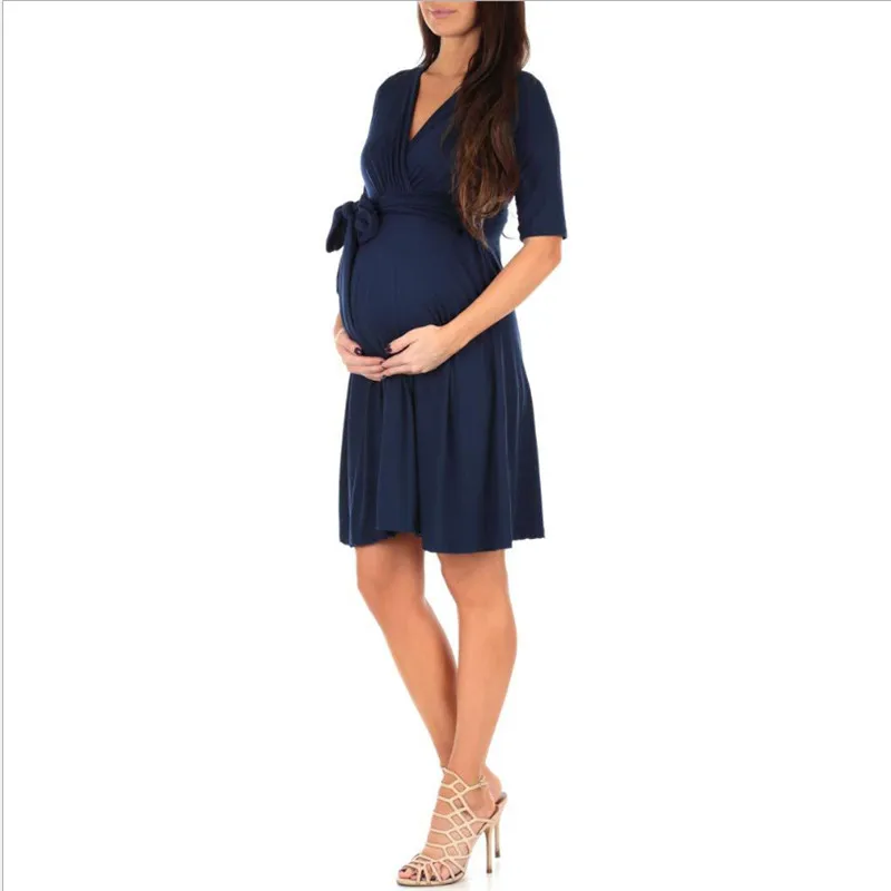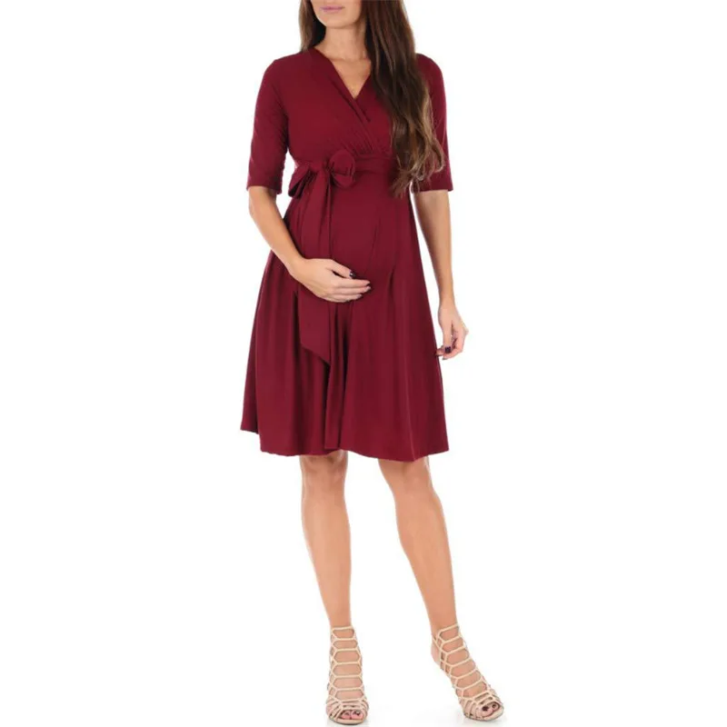 Женское платье для беременных с запахом, с регулируемым поясом и V-образным вырезом, платья для кормления грудью, повседневная для кормления платье