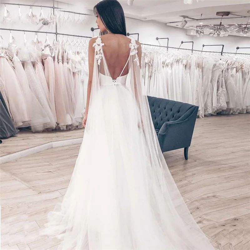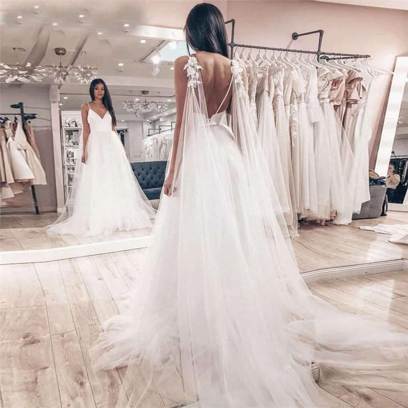 Тюлевое платье до пола, белые свадебные платья а-силуэта, свадебные...