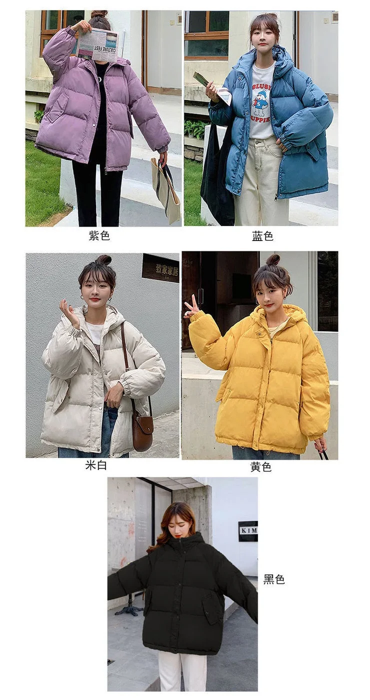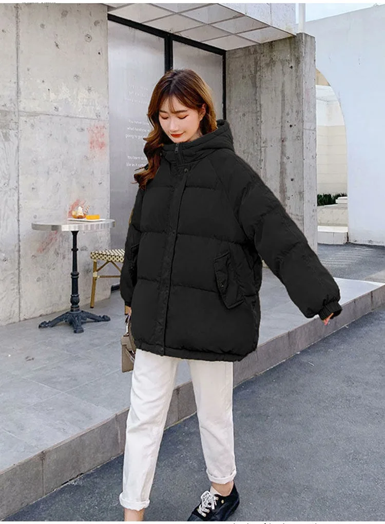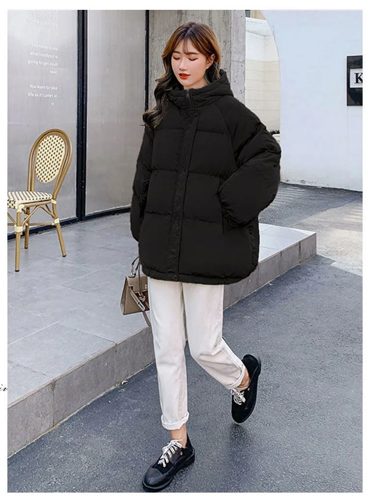 Куртка женская зимняя с капюшоном, однотонная, черная, белая, теплая, свободная, короткая, парка большого размера, 2021