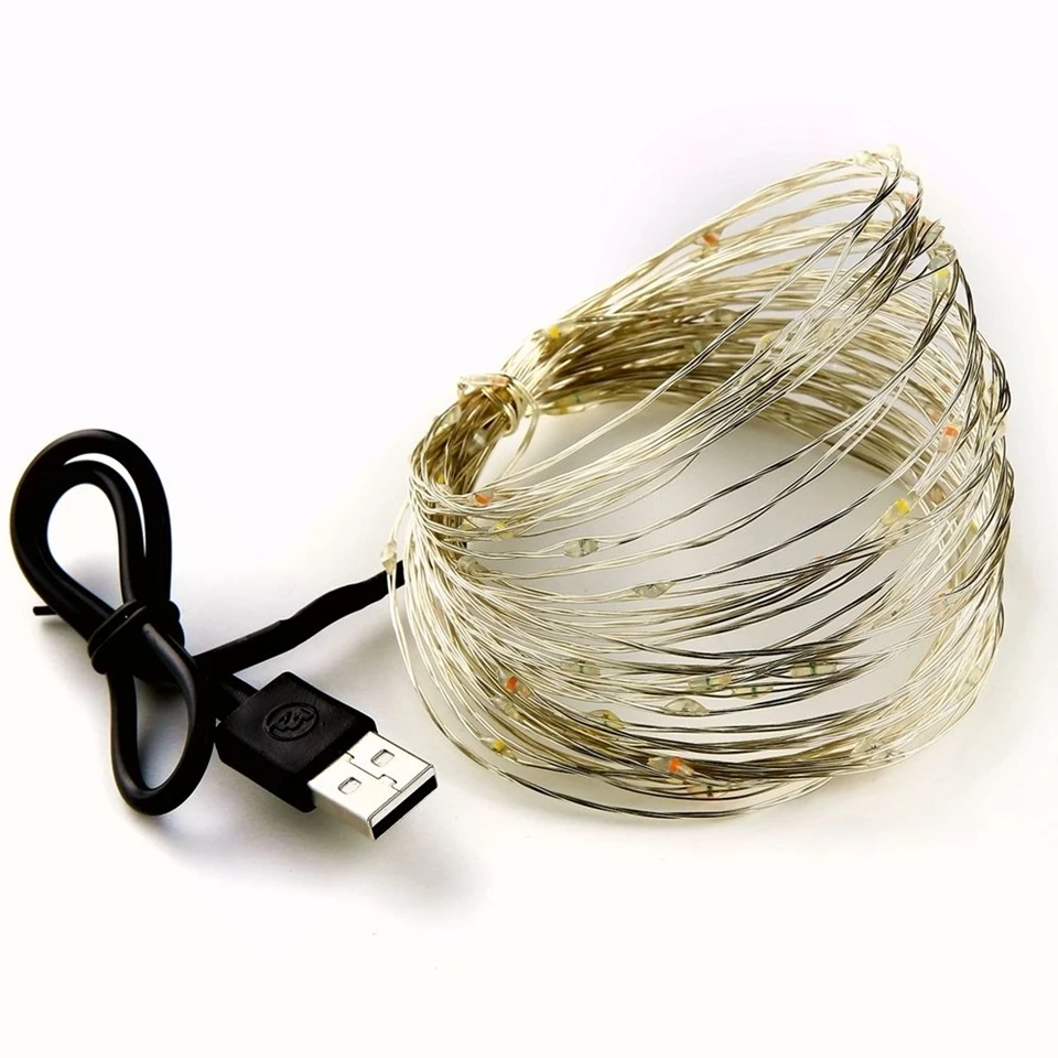 Характеристики: супер яркий и низкое энергопотребление. Полупроводниковый чип-светильник, устойчивый к поломке и устойчивый к тряске. Длительный срок службы: более 100000 часов. Безопасный и экологически чистый, без излучения или элементов загрязнения. Подходит для рождества, свадьбы, Дня Святого Валентина, вечерние, пабы, концерта, модного шоу и т. д. Спецификация основание шнура: светодиод USB Количество: 20 шт. 50 шт./100 шт. длина: 2 м/5 м/10 поставка-счетчик Напряжение: 5 В постоянного тока Рабочая мощность: 5 Вт-8 Вт/комплект Материал свинца: медный провод водонепроницаемый: IP65 цвет светодиода: теплый белый/белый посылка включает в себя: 1X 5 м или 10 м USB/батарейный блок медный провод Светодиод