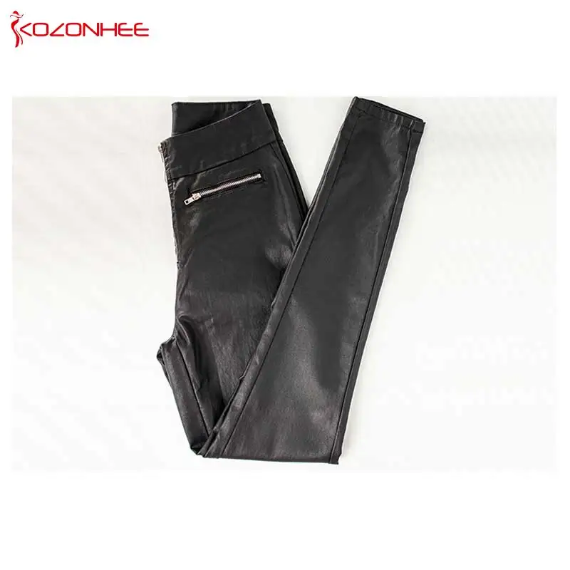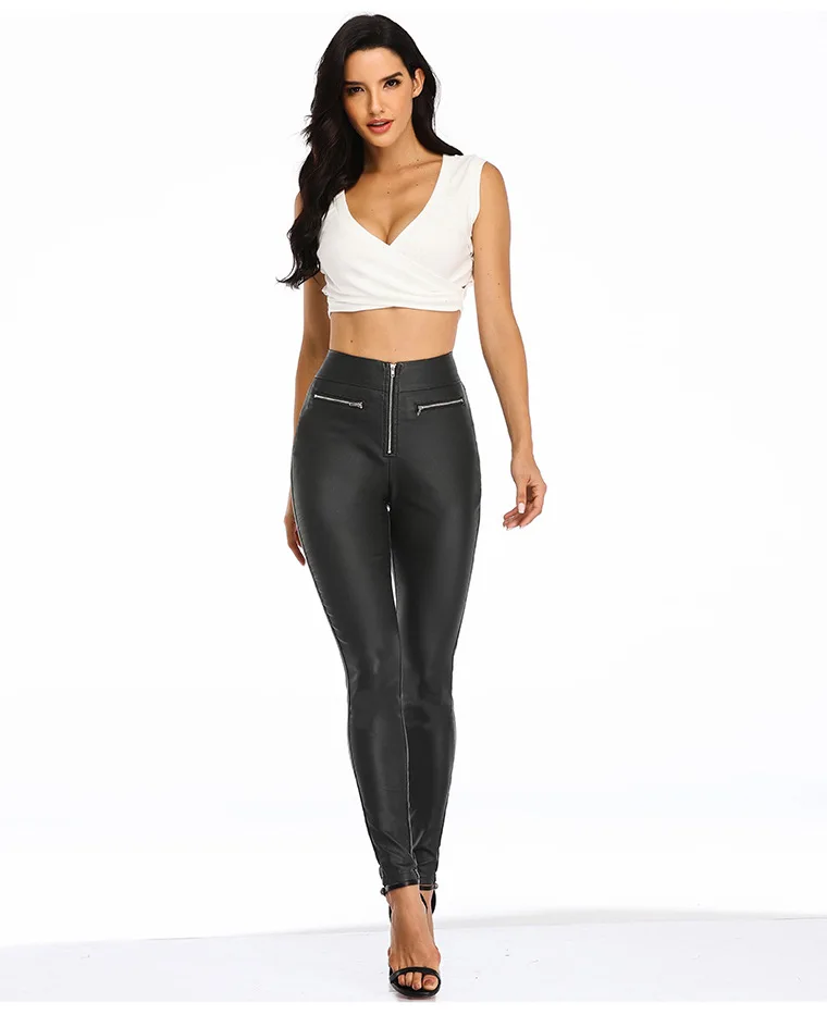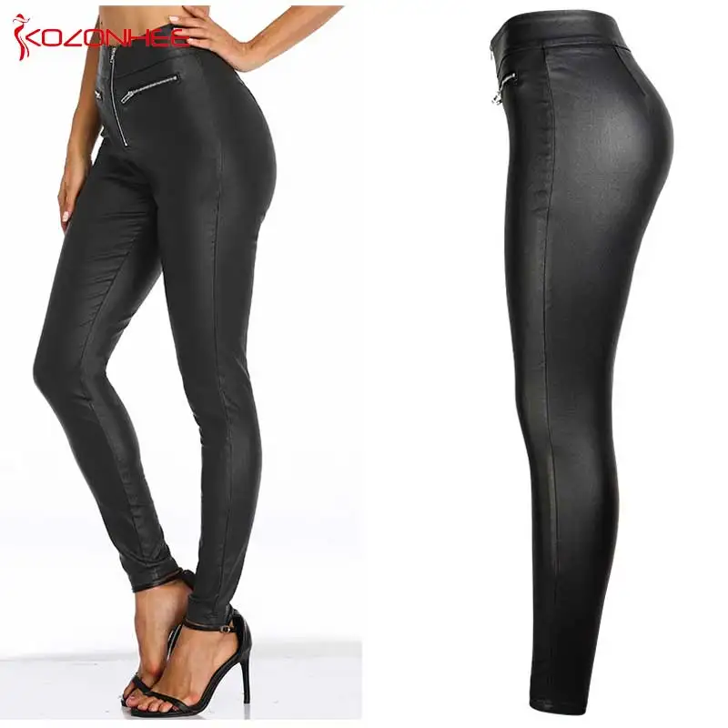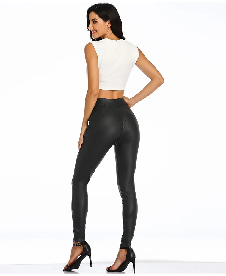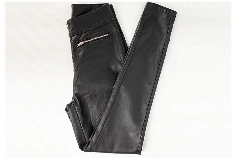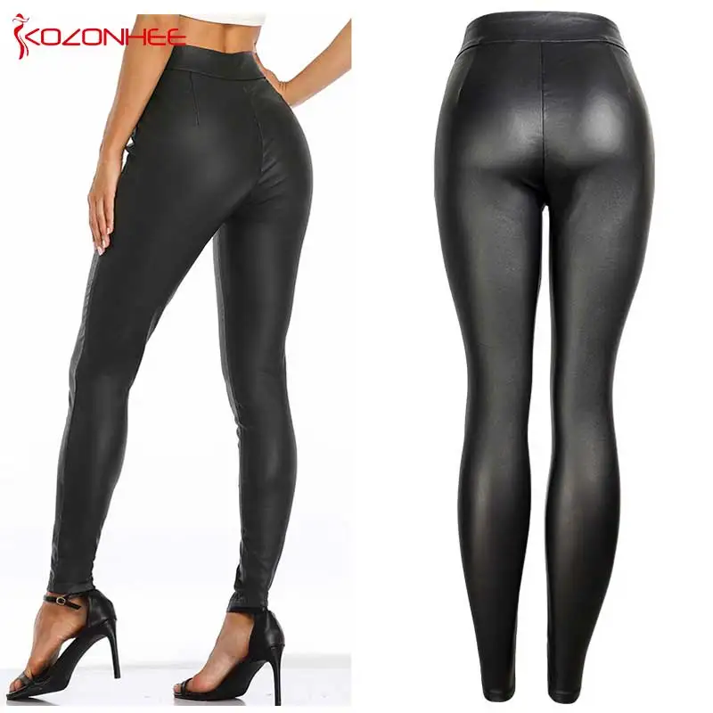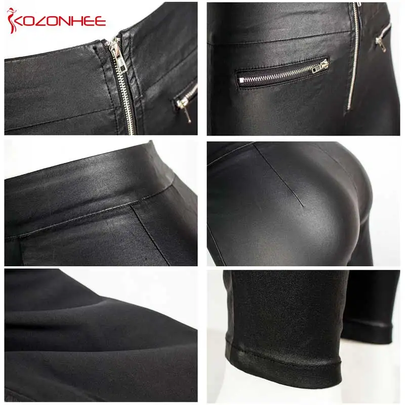 Стрейчевые черные брюки из искусственной кожи женские эластичные колготки с высокой талией женские узкие брюки из искусственной кожи размера плюс #12