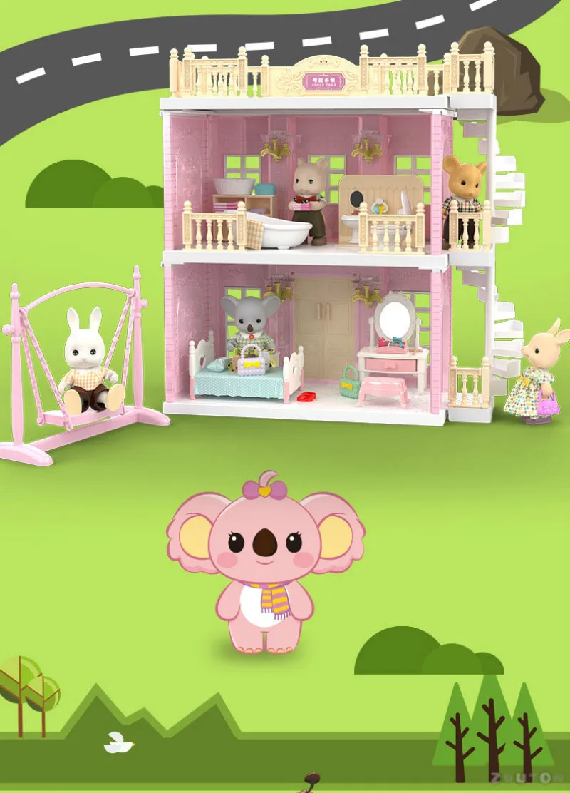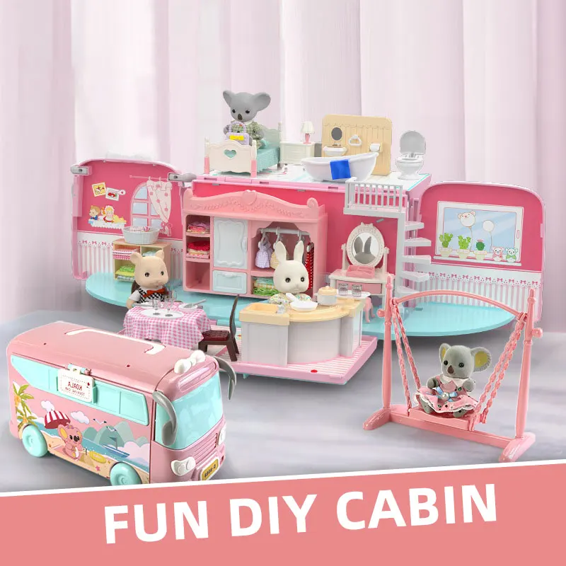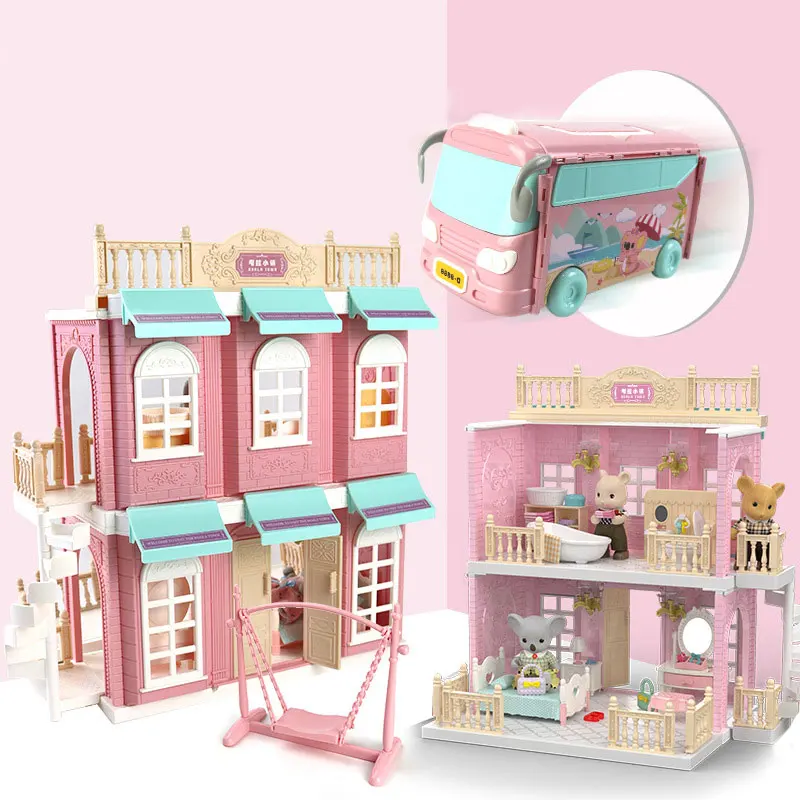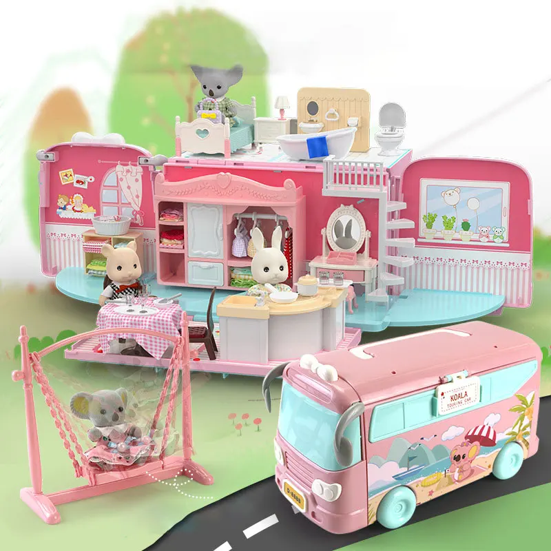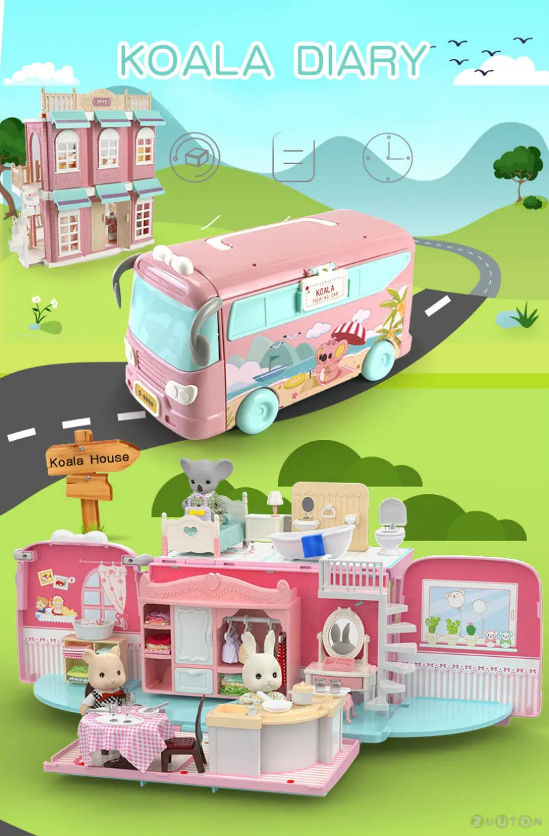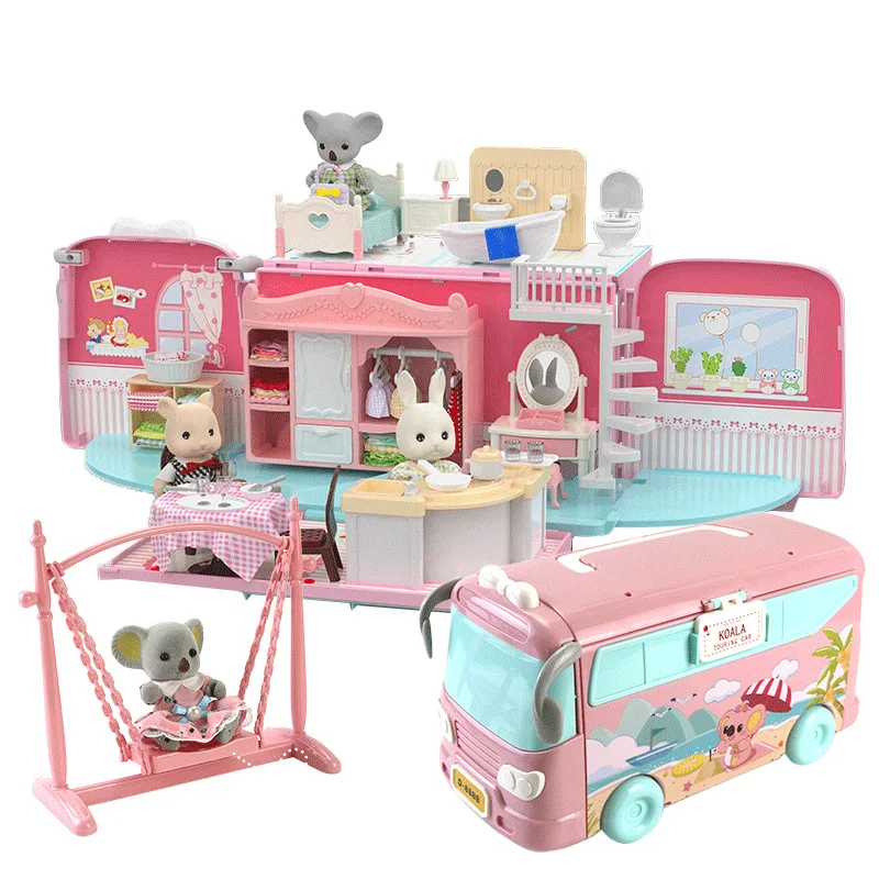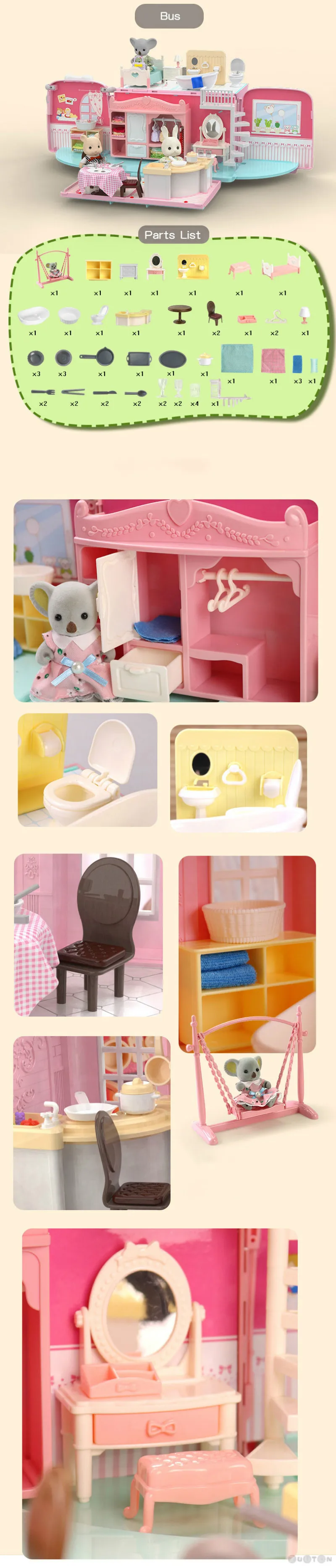 Миниатюрный Кукольный домик, автобус, коала, семейные комнаты, кукольный домик, спальня, кухня, булочная, магазин, дуплексные Игрушки для девочек