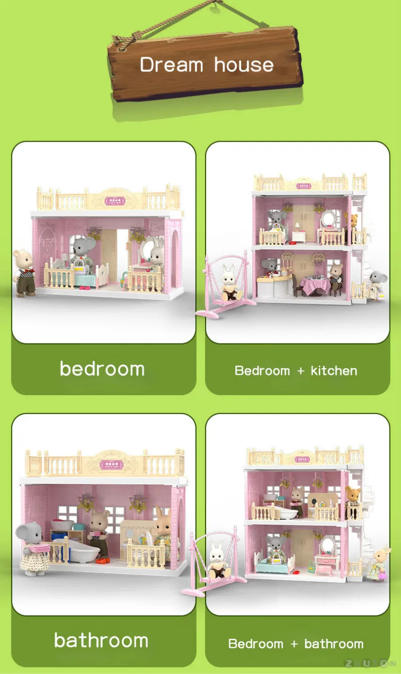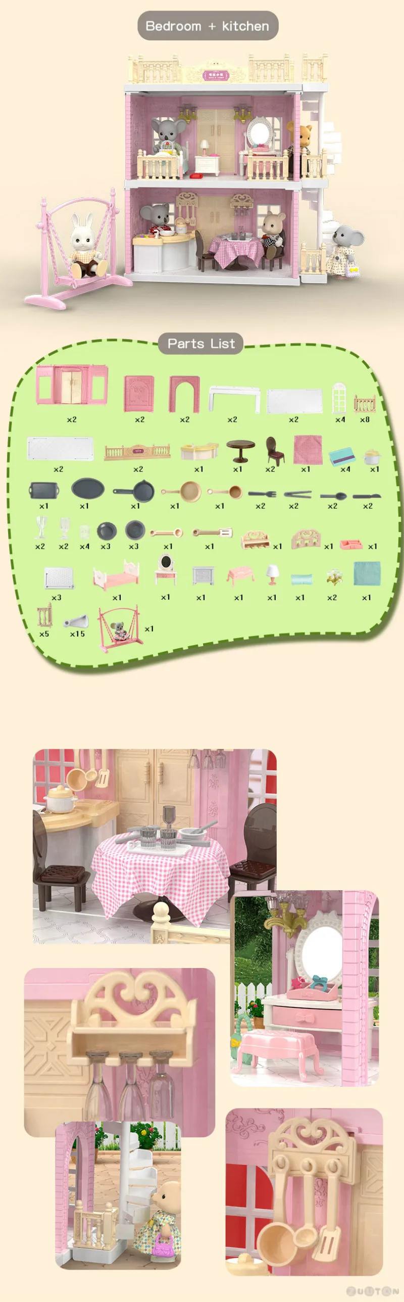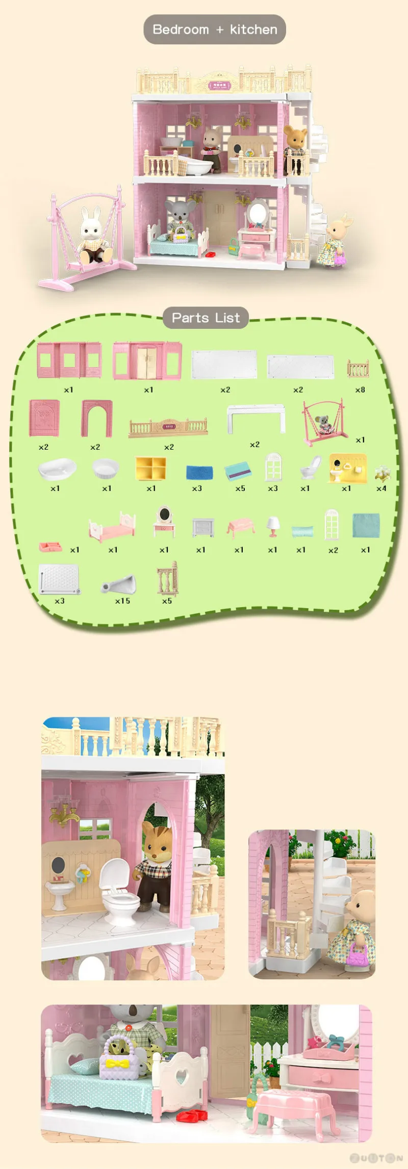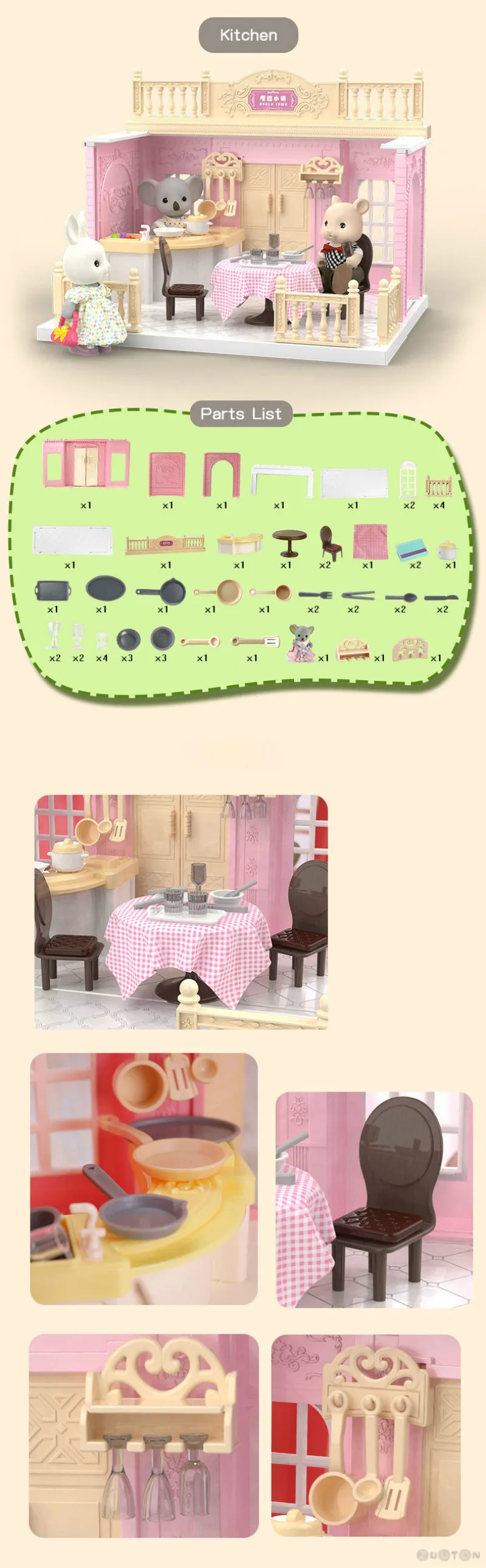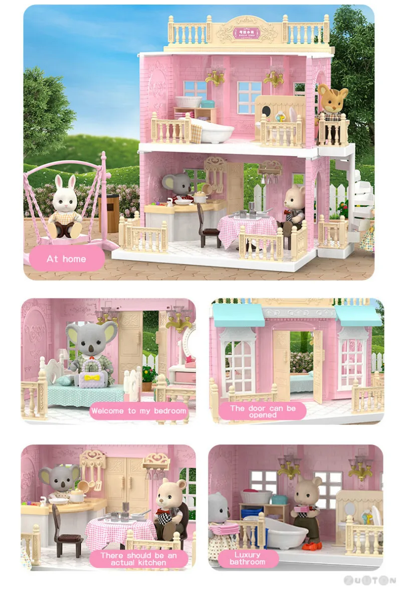 Миниатюрный Кукольный домик, автобус, коала, семейные комнаты, кукольный домик, спальня, кухня, булочная, магазин, дуплексные Игрушки для девочек