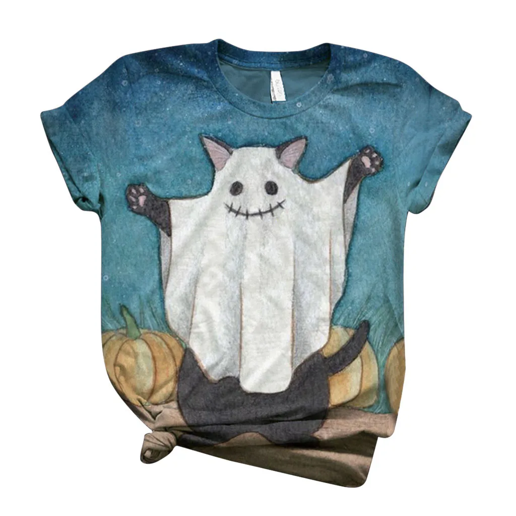 Футболка женская Harajuku, с коротким рукавом, круглым вырезом и принтом на Хэллоуин, размера плюс