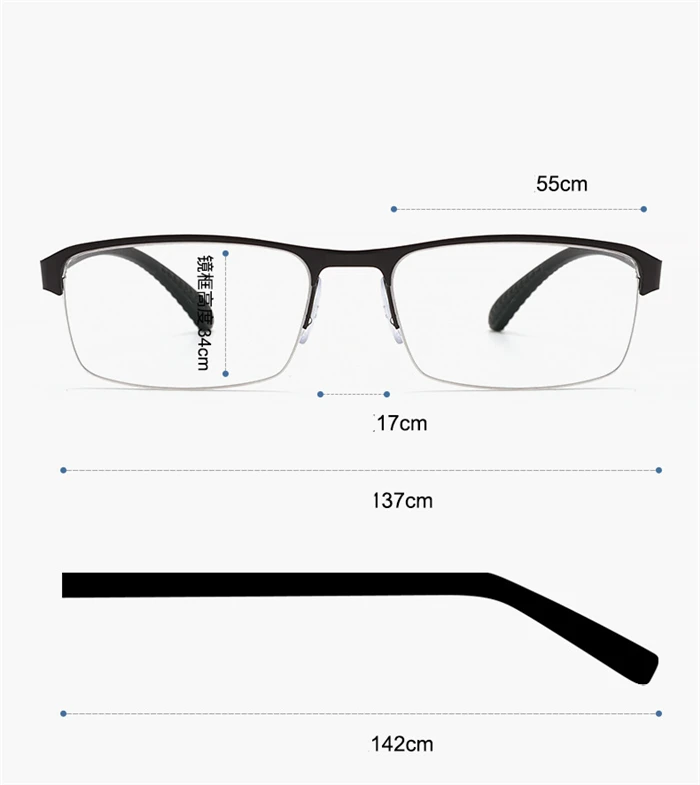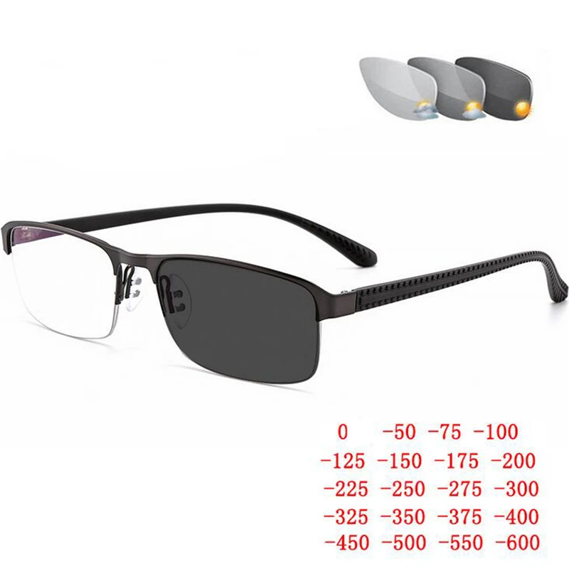 Очки фотохромные квадратные для близорукости, полимерные линзы с полуоправой, диоптрии от 0-0,5-0,75 до-6,0