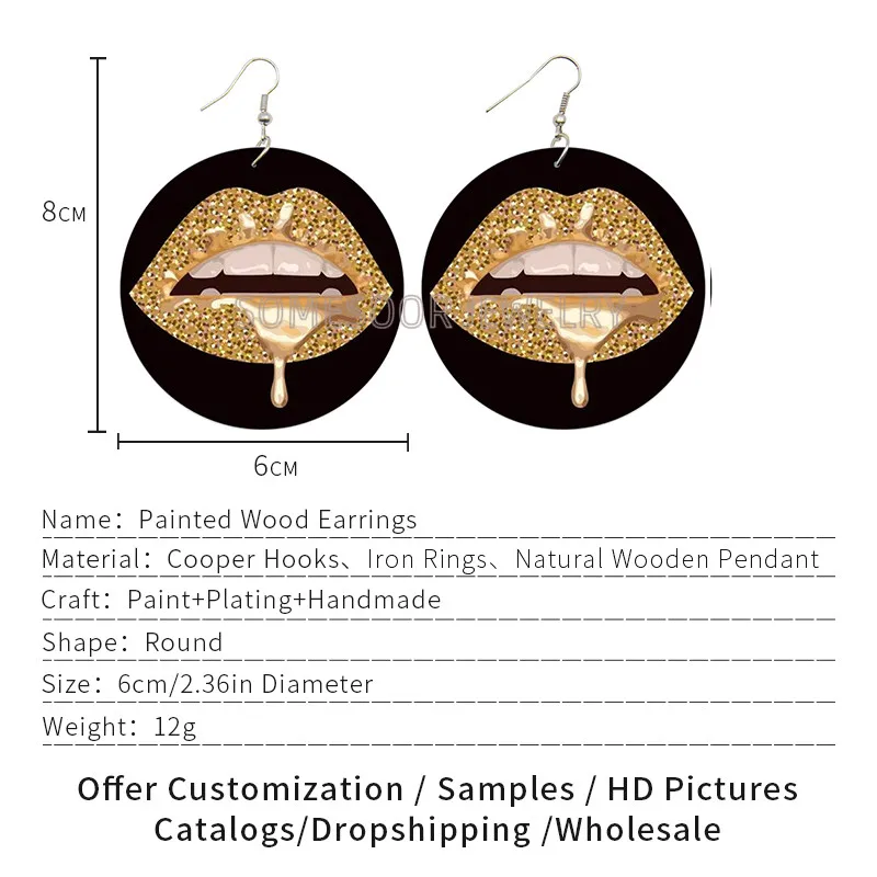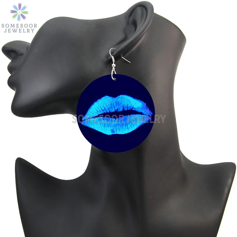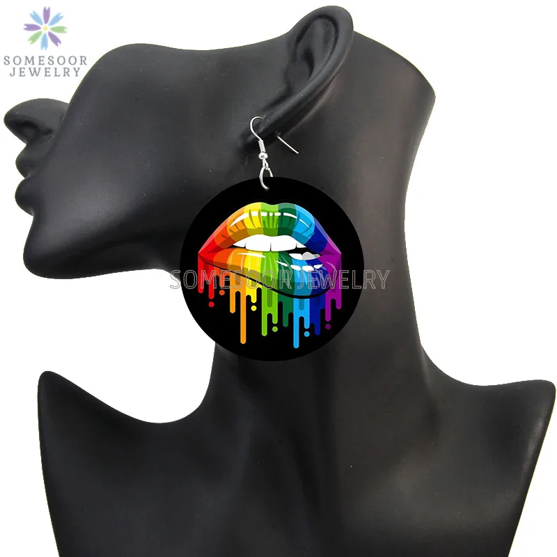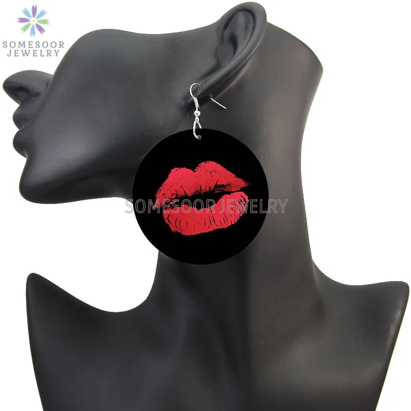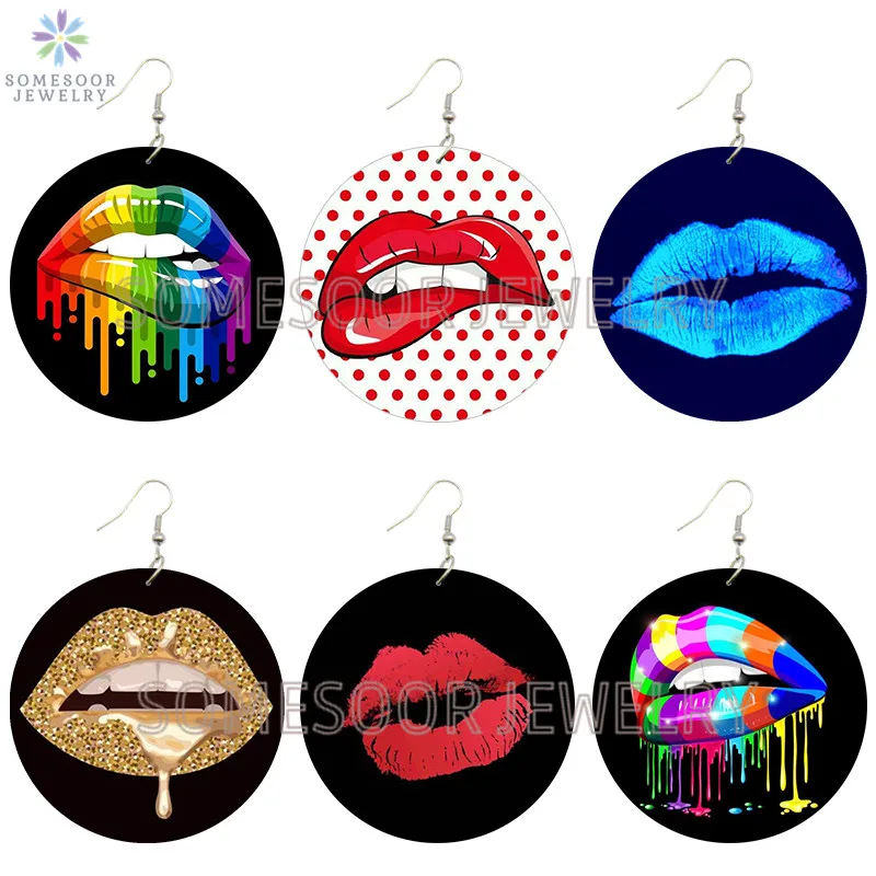 SOMESOOR Красочные Любовь губы комикс деревянные висячие серьги винтажные 6 см Подвески-петли Висячие ювелирные изделия оба печати для женщин Подарки