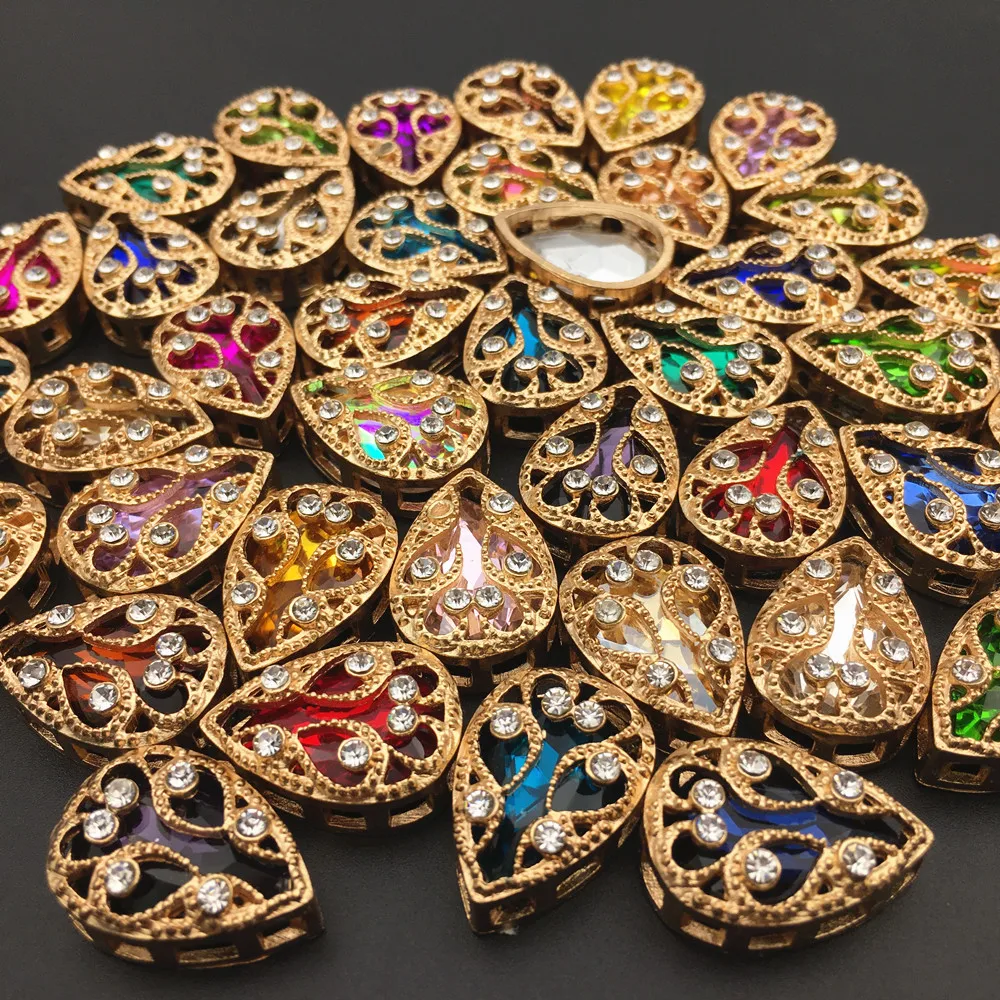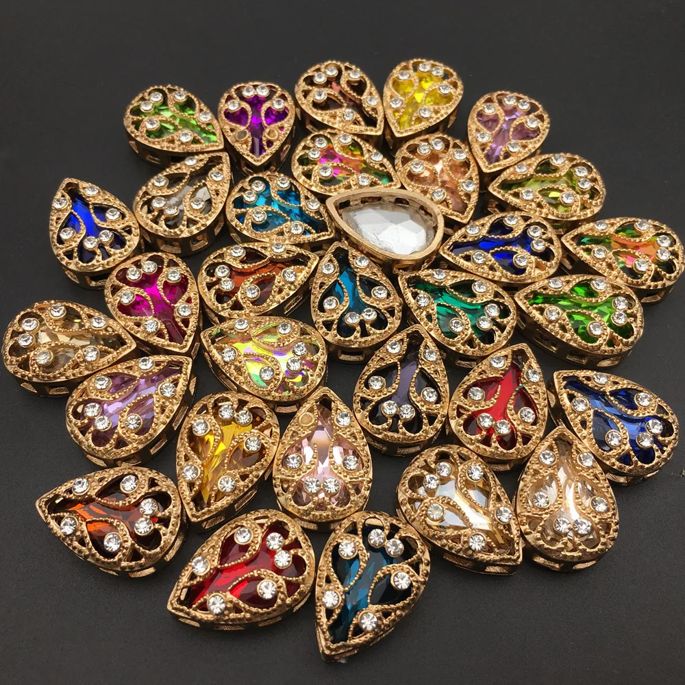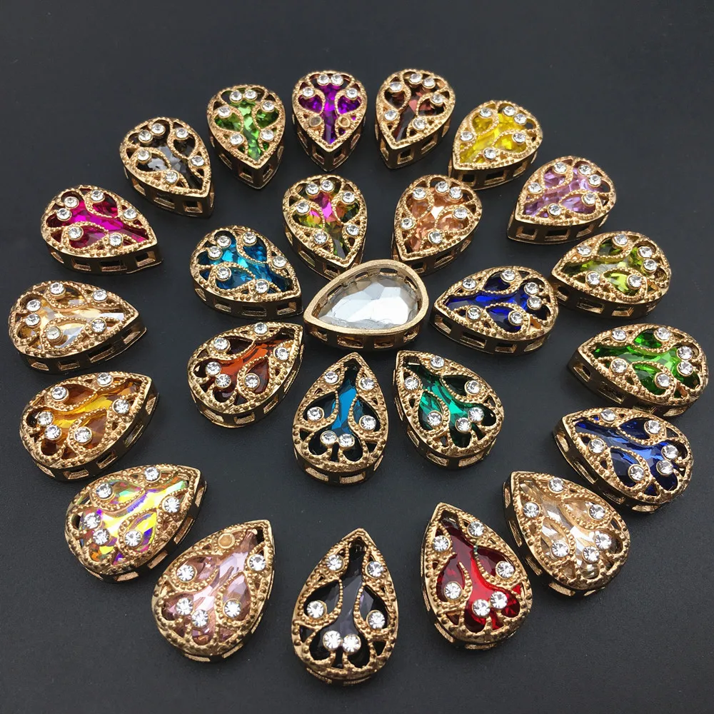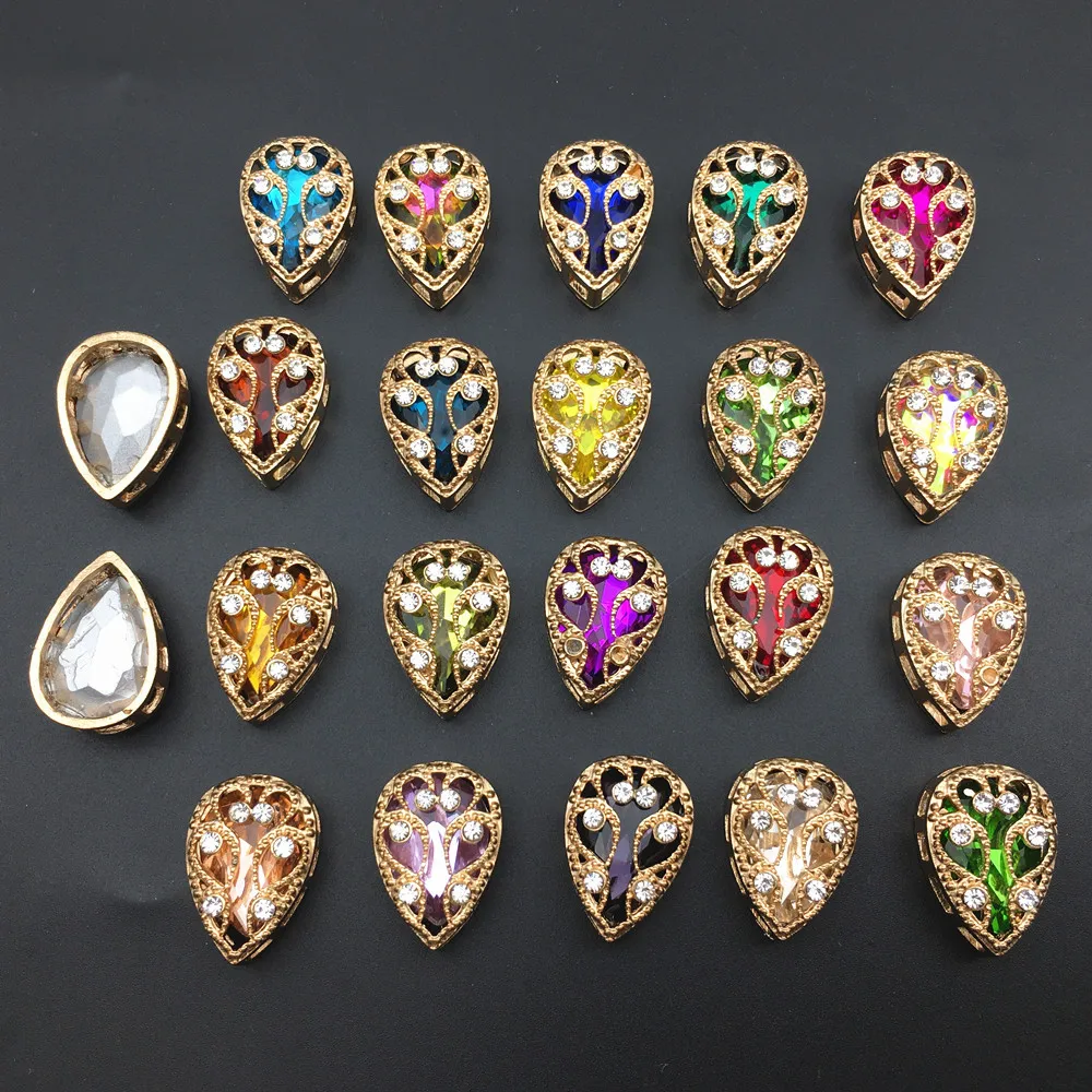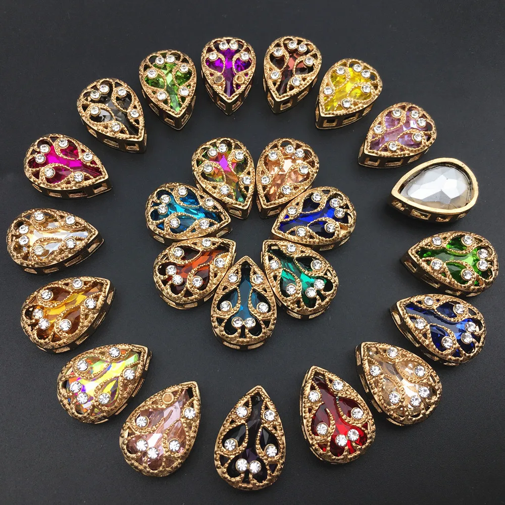 Стеклянный кристалл DR, 10x14 мм, 13x18 мм, клей для красивой грушевидной воды, стразы, Золотой зажим для пришивания, камень для свадебного платья, сделай сам