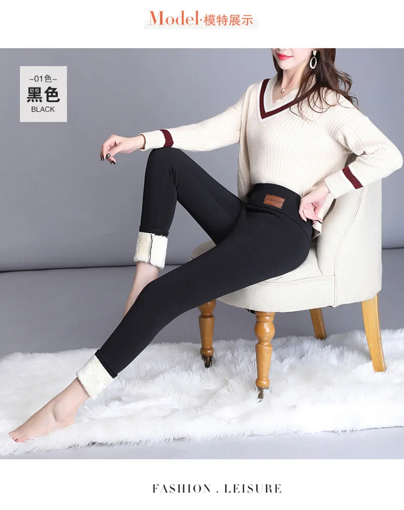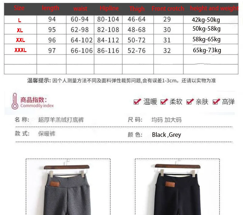 1. Плюшевая Талия для тепла 2, с эластичной резинкой на талии 3. Свободный и удобный 4. Подъемная линия ноги 5. Высота внутри 6 、 кашемировой подкладкой