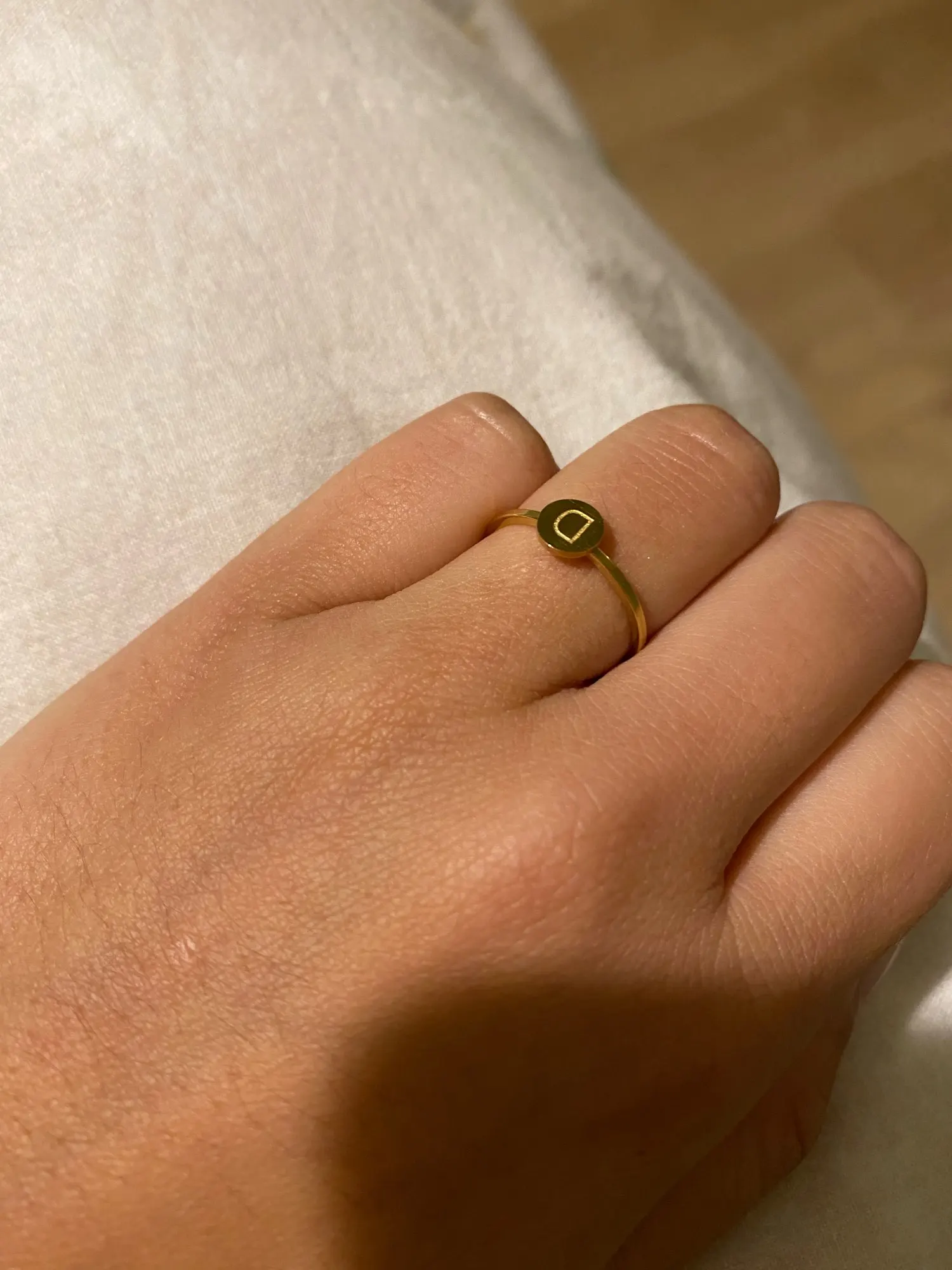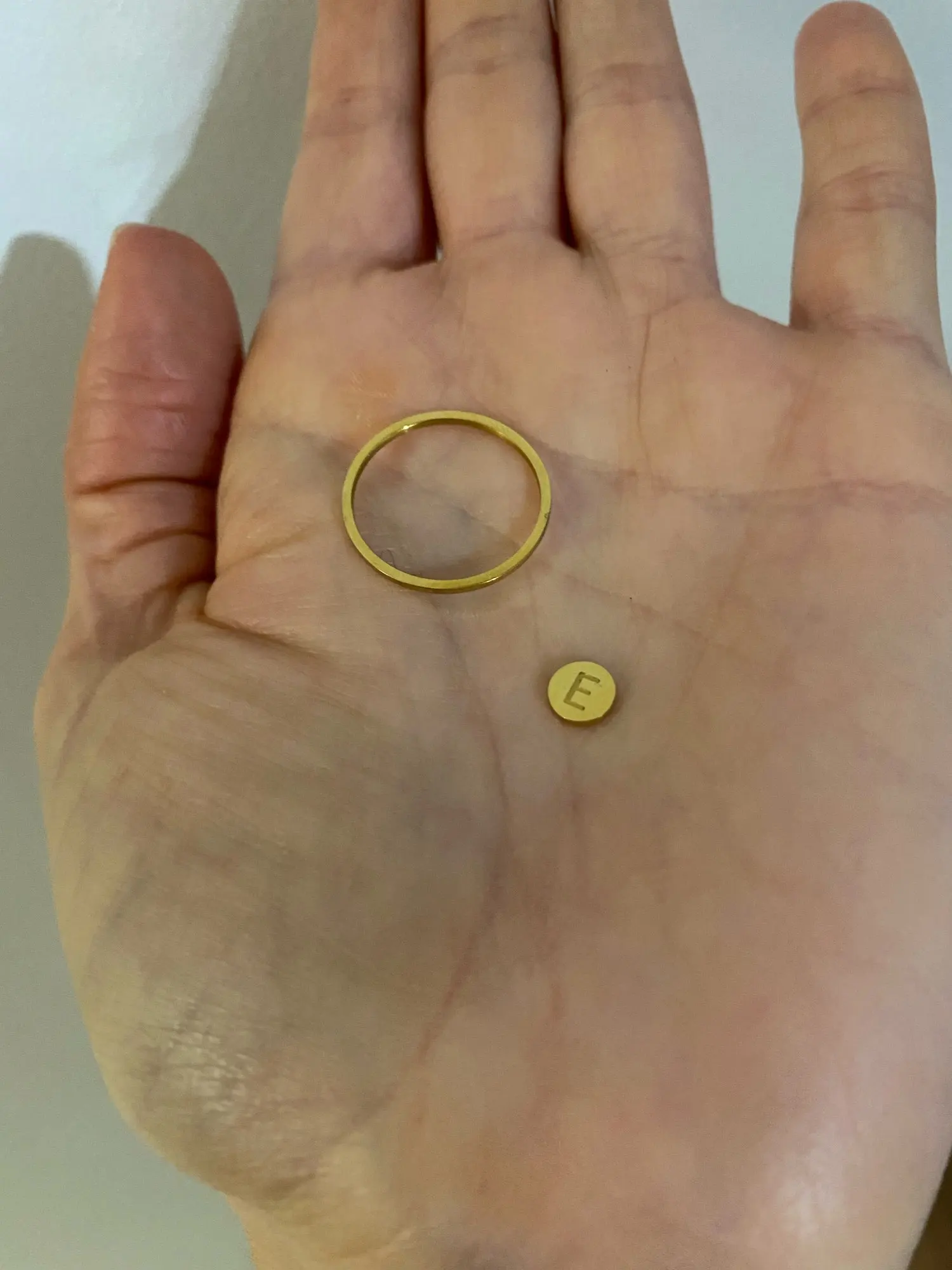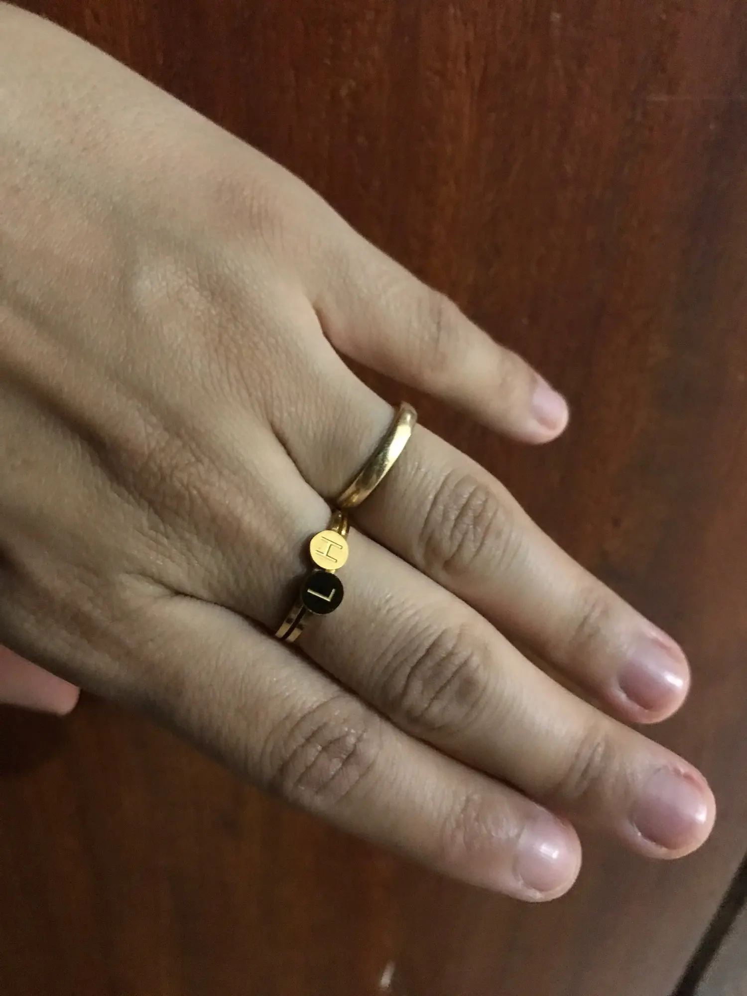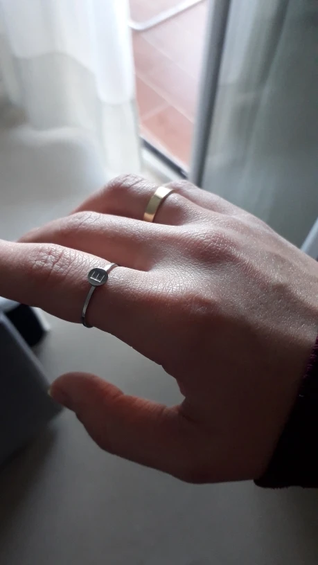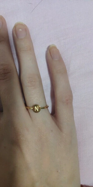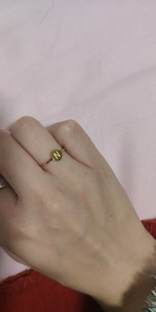 Это очень мило! Может быть, было бы лучше взять на один размер меньше, потому что я думаю, что это будет лучше на безымянном пальце. В противном случае, очень хорошо. Золото красивое, а гравировка идеальная. Это просто и деликатно, и поскольку это нержавеющая сталь, ее можно без проблем намочить, что она не станет уродливой. Правда в том, что за свою цену оно того стоит.