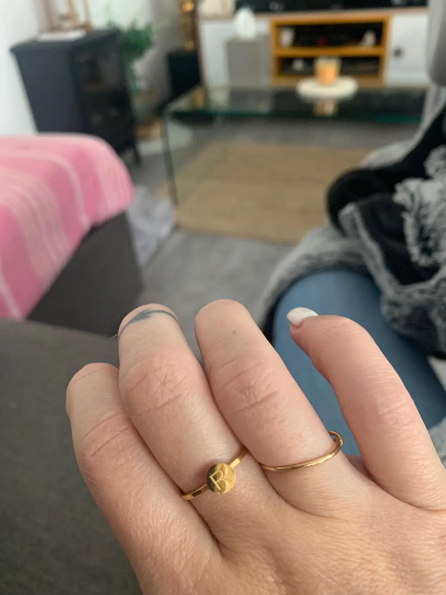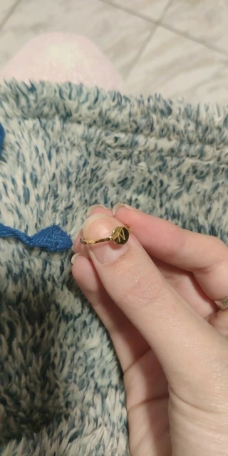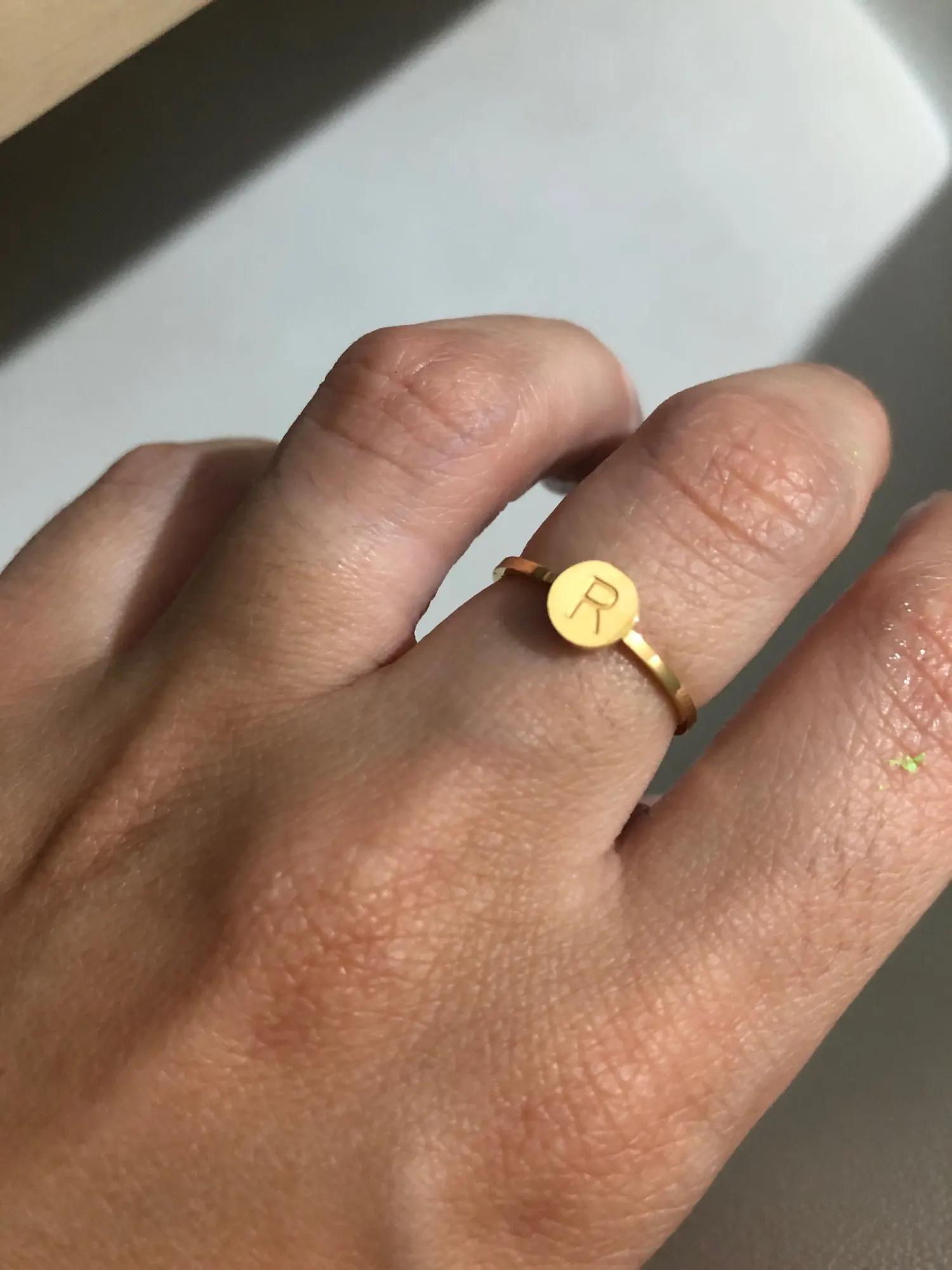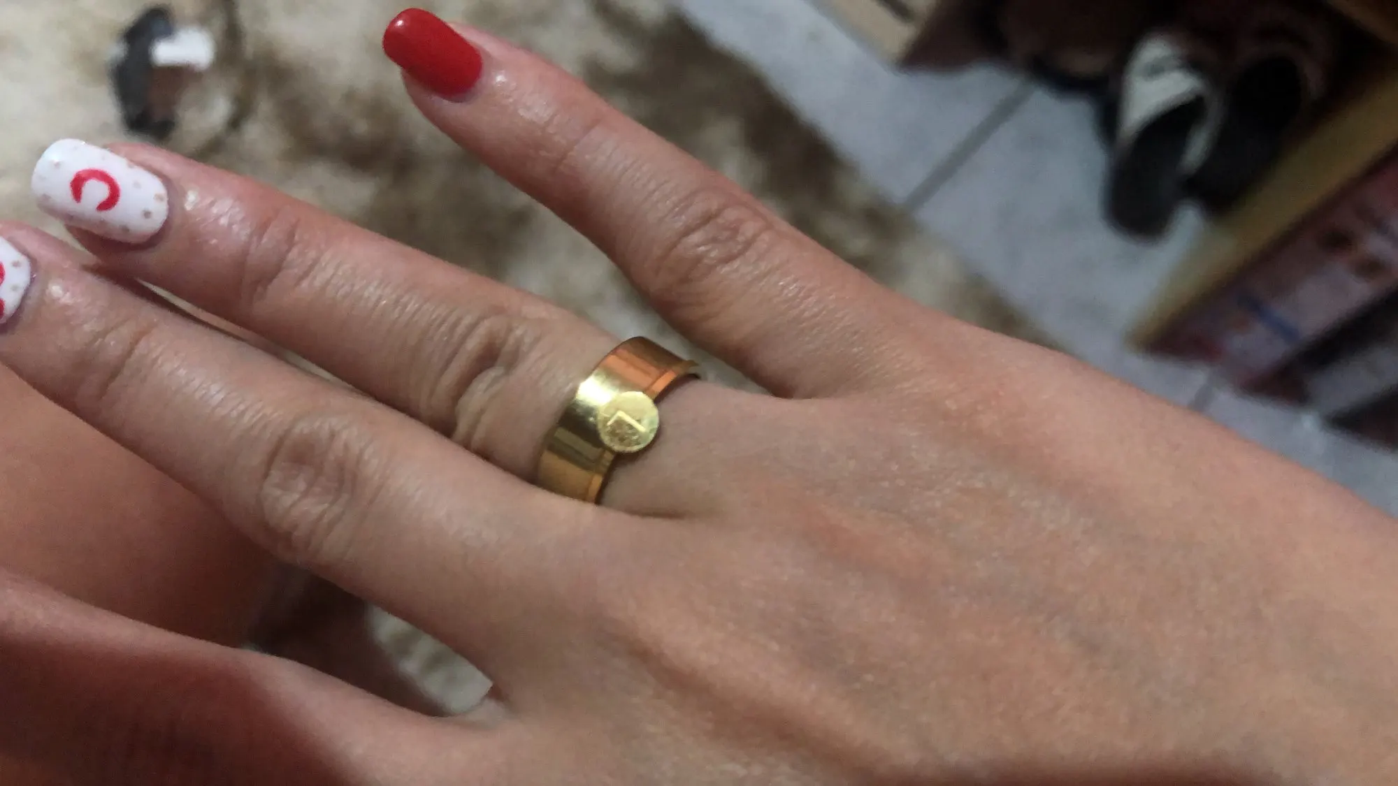 Это очень мило! Может быть, было бы лучше взять на один размер меньше, потому что я думаю, что это будет лучше на безымянном пальце. В противном случае, очень хорошо. Золото красивое, а гравировка идеальная. Это просто и деликатно, и поскольку это нержавеющая сталь, ее можно без проблем намочить, что она не станет уродливой. Правда в том, что за свою цену оно того стоит.