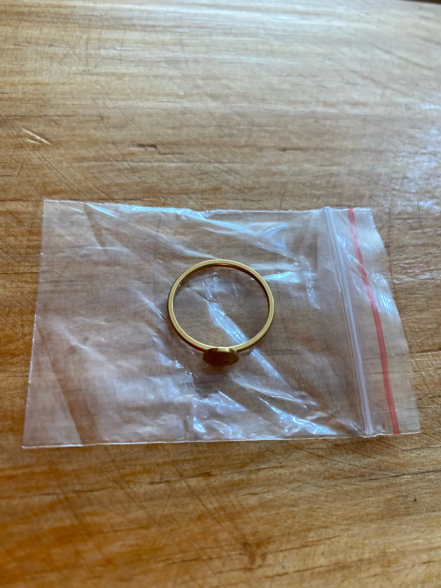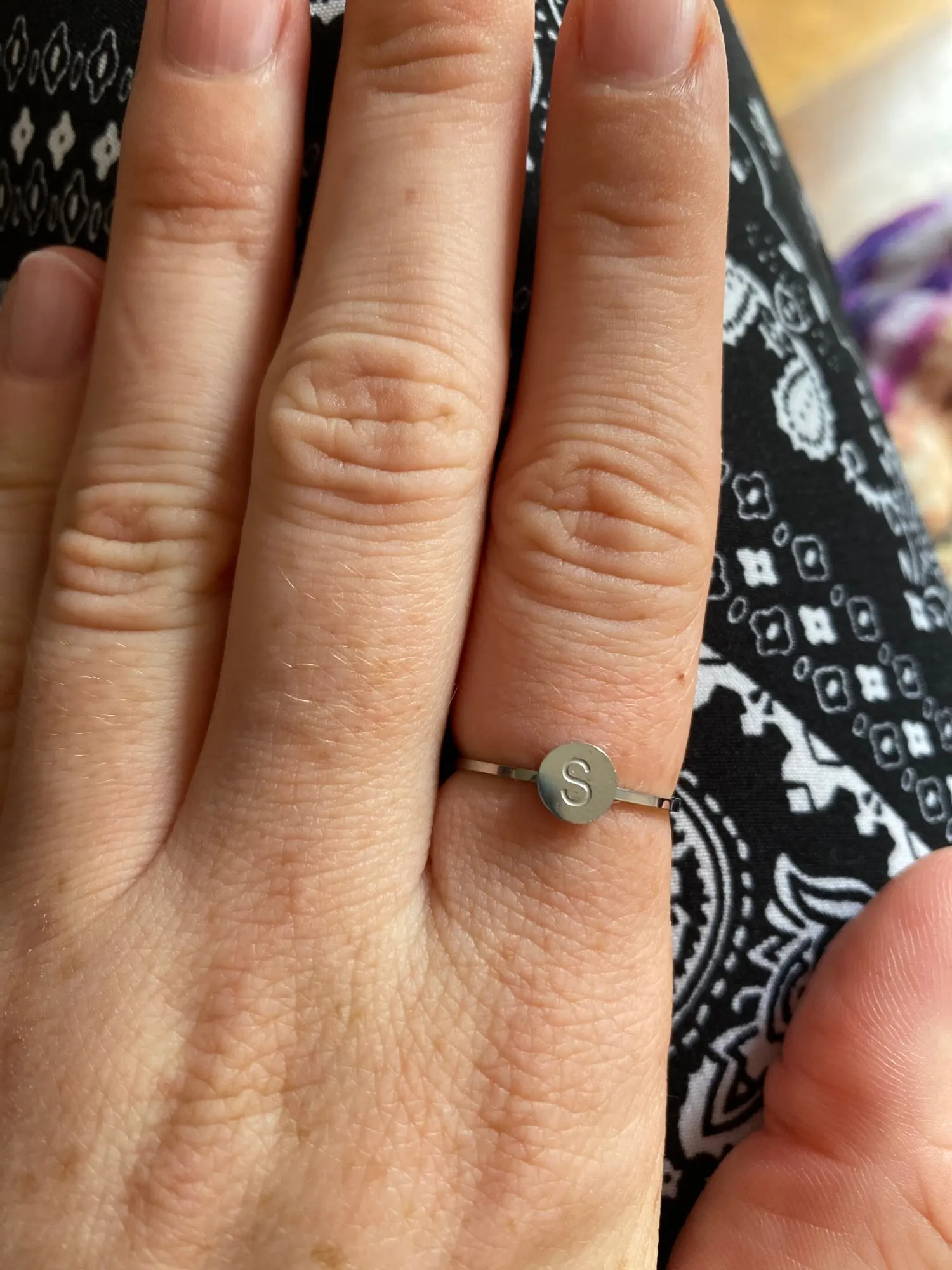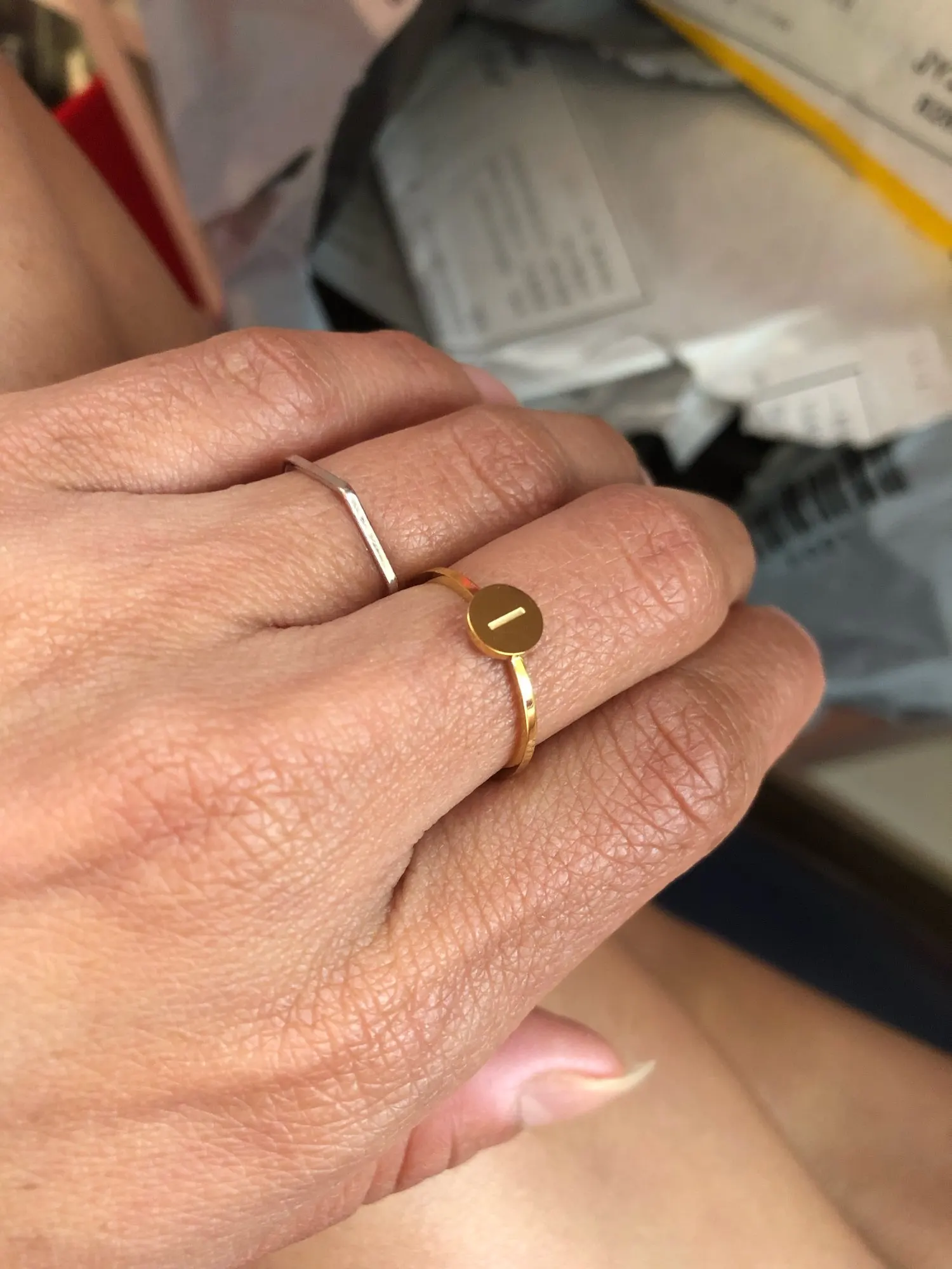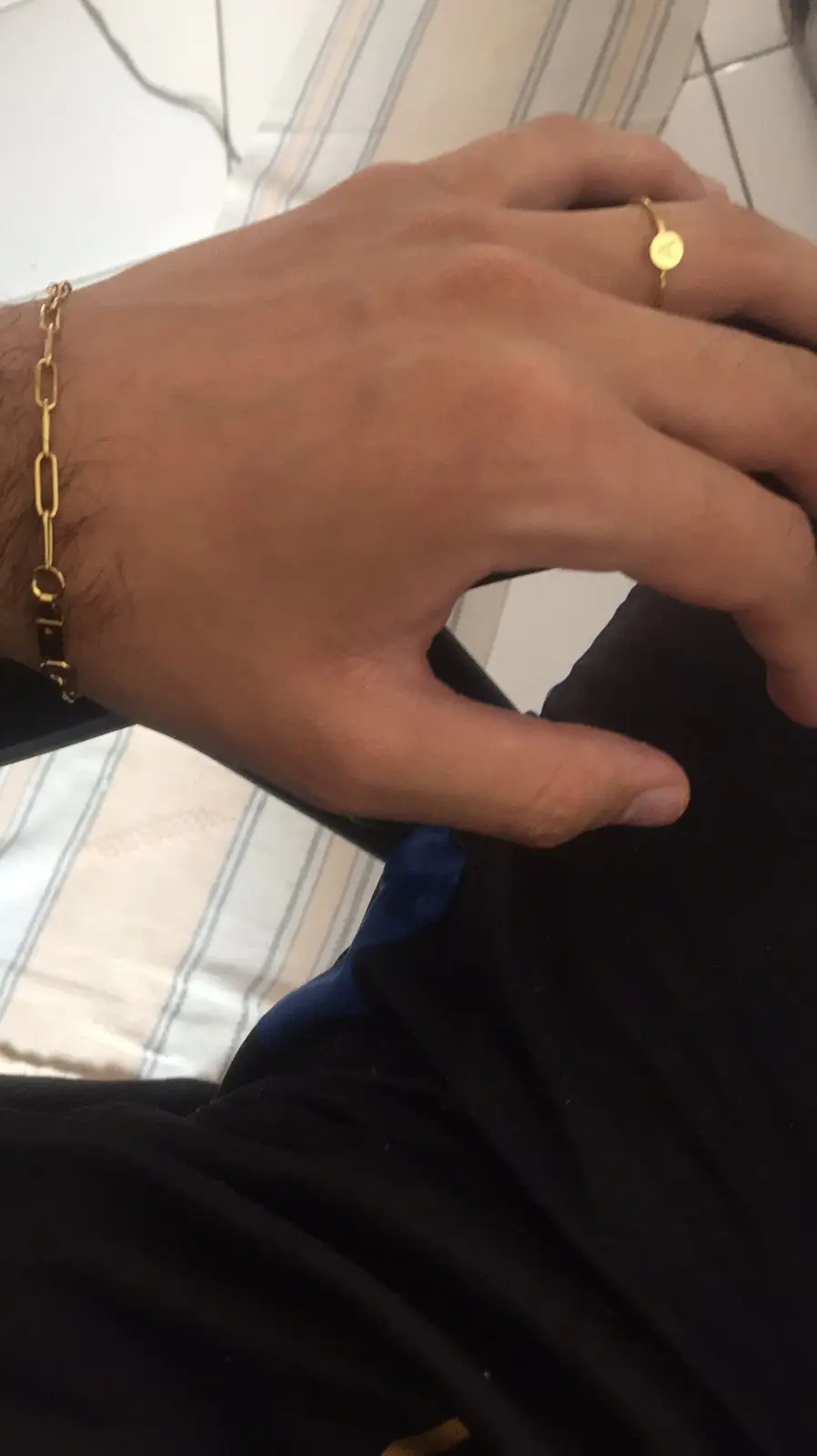 Это очень мило! Может быть, было бы лучше взять на один размер меньше, потому что я думаю, что это будет лучше на безымянном пальце. В противном случае, очень хорошо. Золото красивое, а гравировка идеальная. Это просто и деликатно, и поскольку это нержавеющая сталь, ее можно без проблем намочить, что она не станет уродливой. Правда в том, что за свою цену оно того стоит.