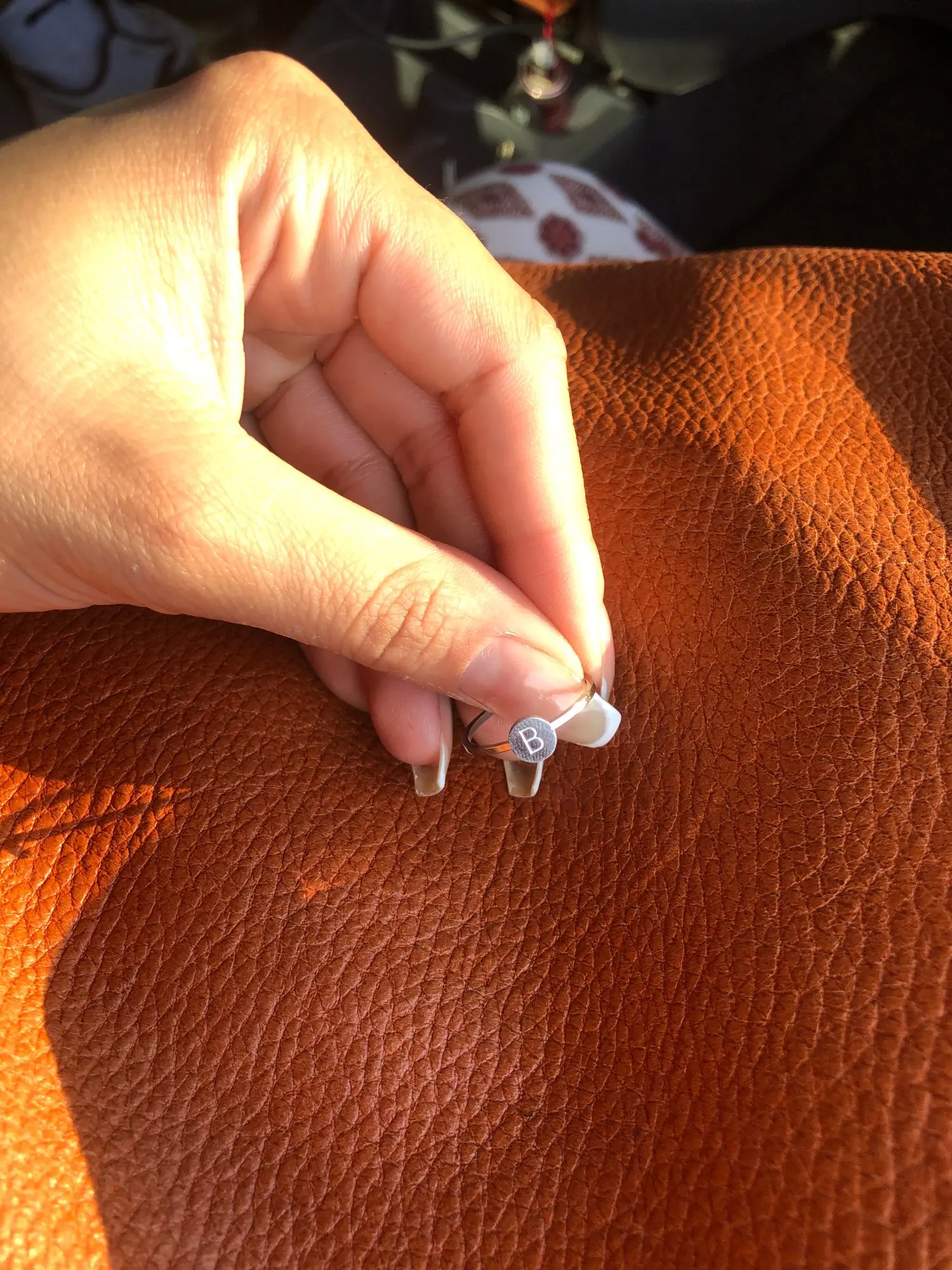 очень маленькая круглая часть с буквой, на ощупь похоже на пластмассу, не на метал. с продавцом не общались