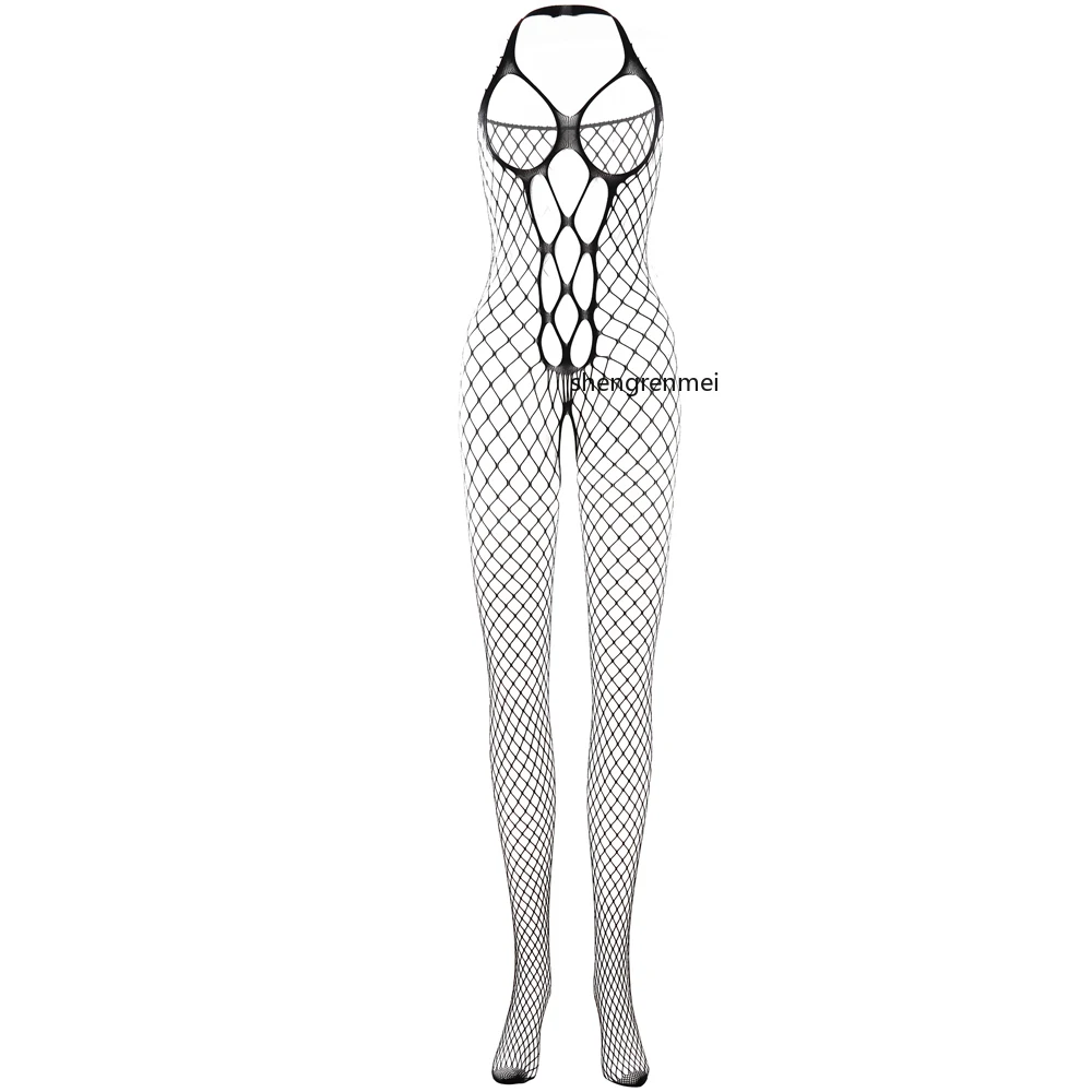Женское прозрачное боди с открытой промежностью, сетчатые колготки