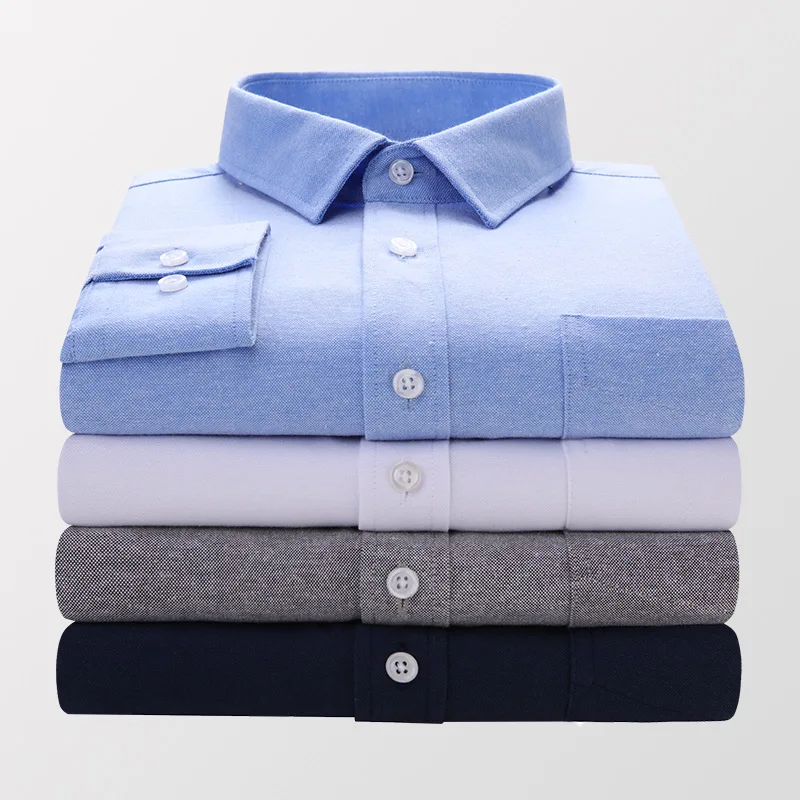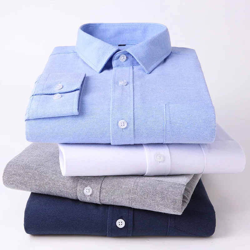 Мужская деловая рубашка, белая, синяя, серая однотонная Повседневна...