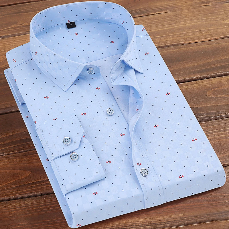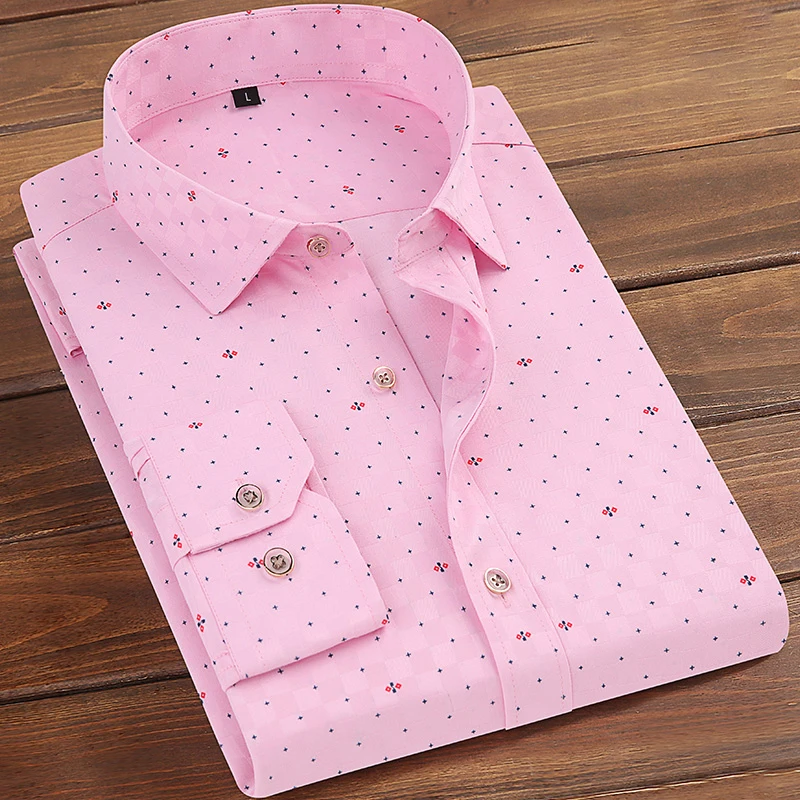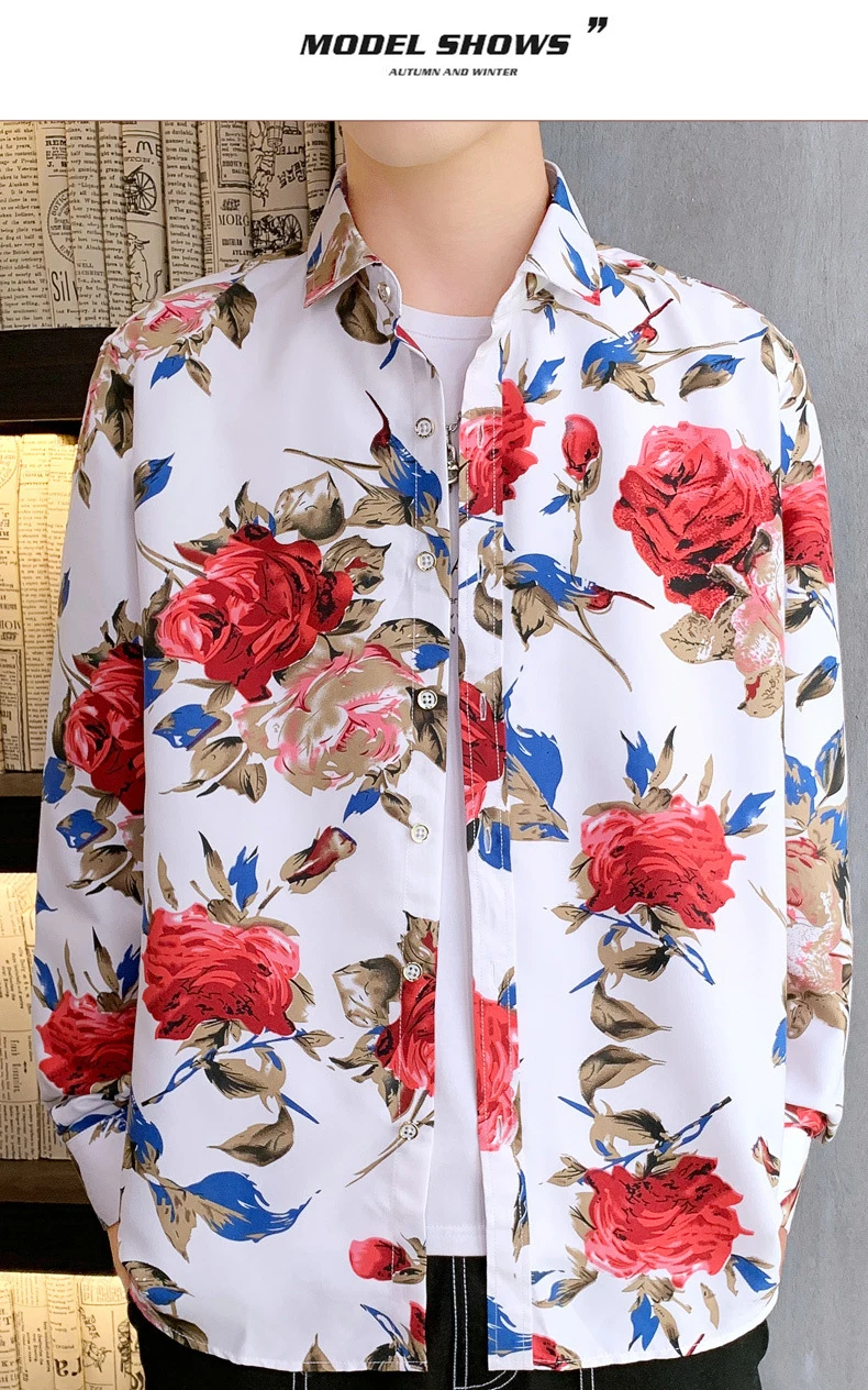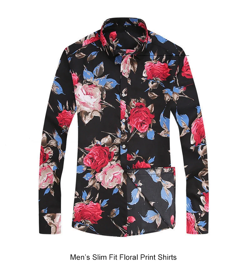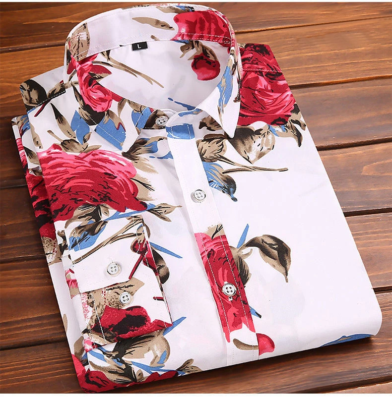 Мужская рубашка с длинным рукавом, из полиэстера, с цветочным принтом