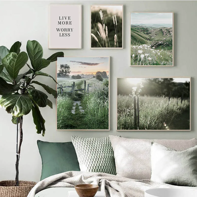 Рассвет сельская Природа Пейзаж Плакат настенный художественный холст печать скандинавский рисунок поле Луг картина скандинавский домашний декор