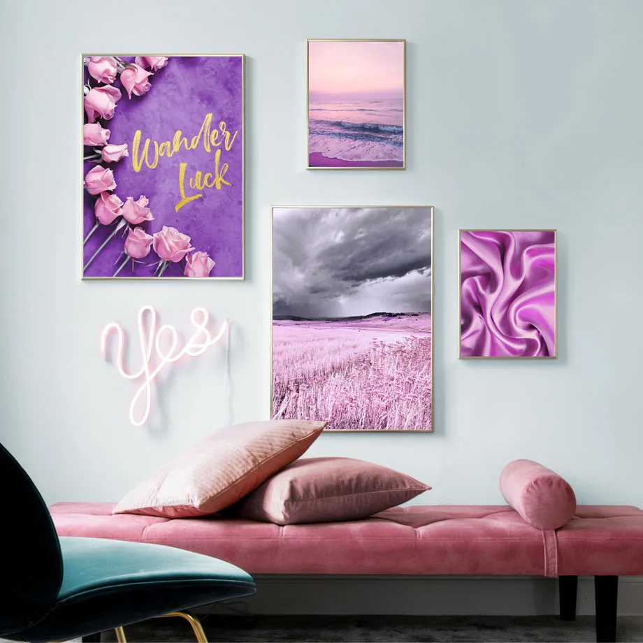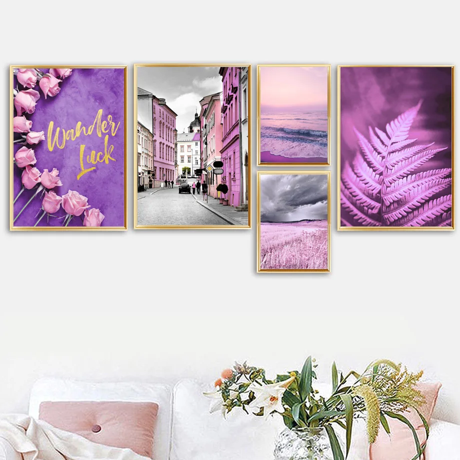 Светильник лый фиолетовый цветок морская трава Land London настенная Картина на холсте скандинавские плакаты и принты настенные картины для декора гостиной