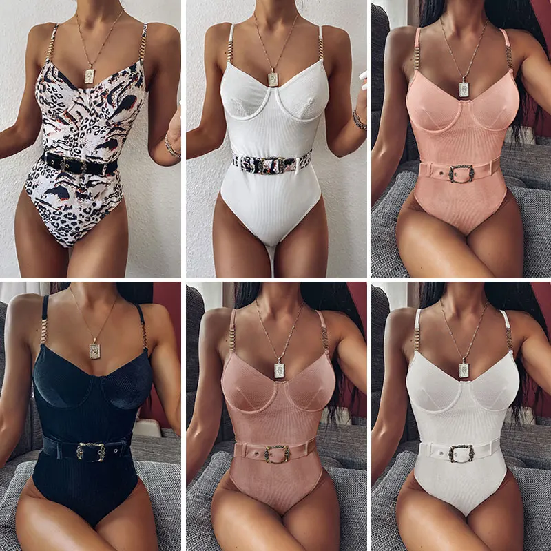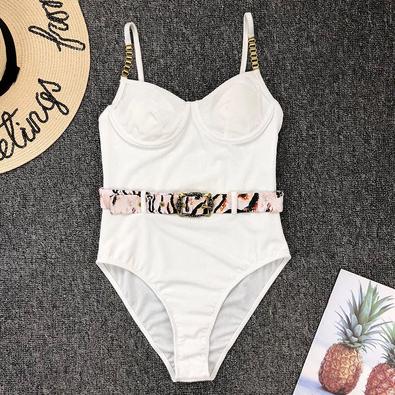 Цельный купальник, Женский Монокини, купальный костюм с ремнем в рубчик, бикини с пуш-ап, купальный костюм, боди, купальник, женский купальник