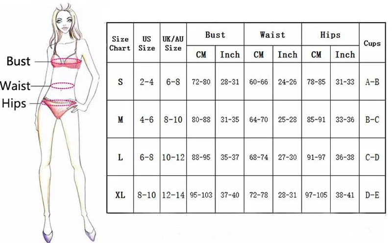 1. Пожалуйста, выберите размер в соответствии с вашим обхватом груди, талии, бедер по периметру, выберите один размер вверх, если у вас есть размеры betwwen. 2. Если вы не уверены, какой размер выбрать, пожалуйста, проконсультируйтесь с нами или оставьте свой размер тела при размещении заказа, мы поможем вам выбрать правильный размер.