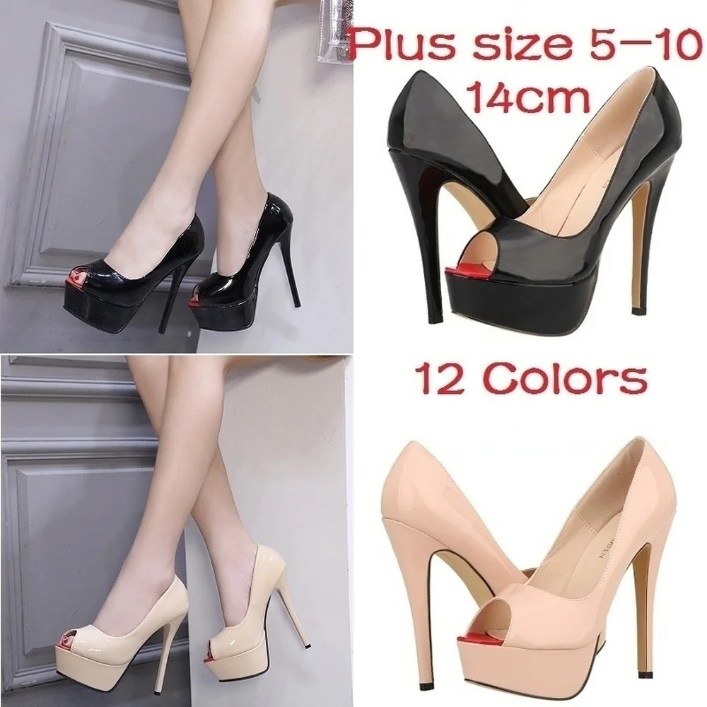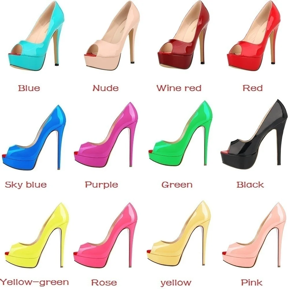 Женские туфли-лодочки LOSLANDIFEN, пикантные туфли с открытым носком на платформе 14 см, очень высокие туфли из лакированной кожи, красные свадебные туфли-лодочки
