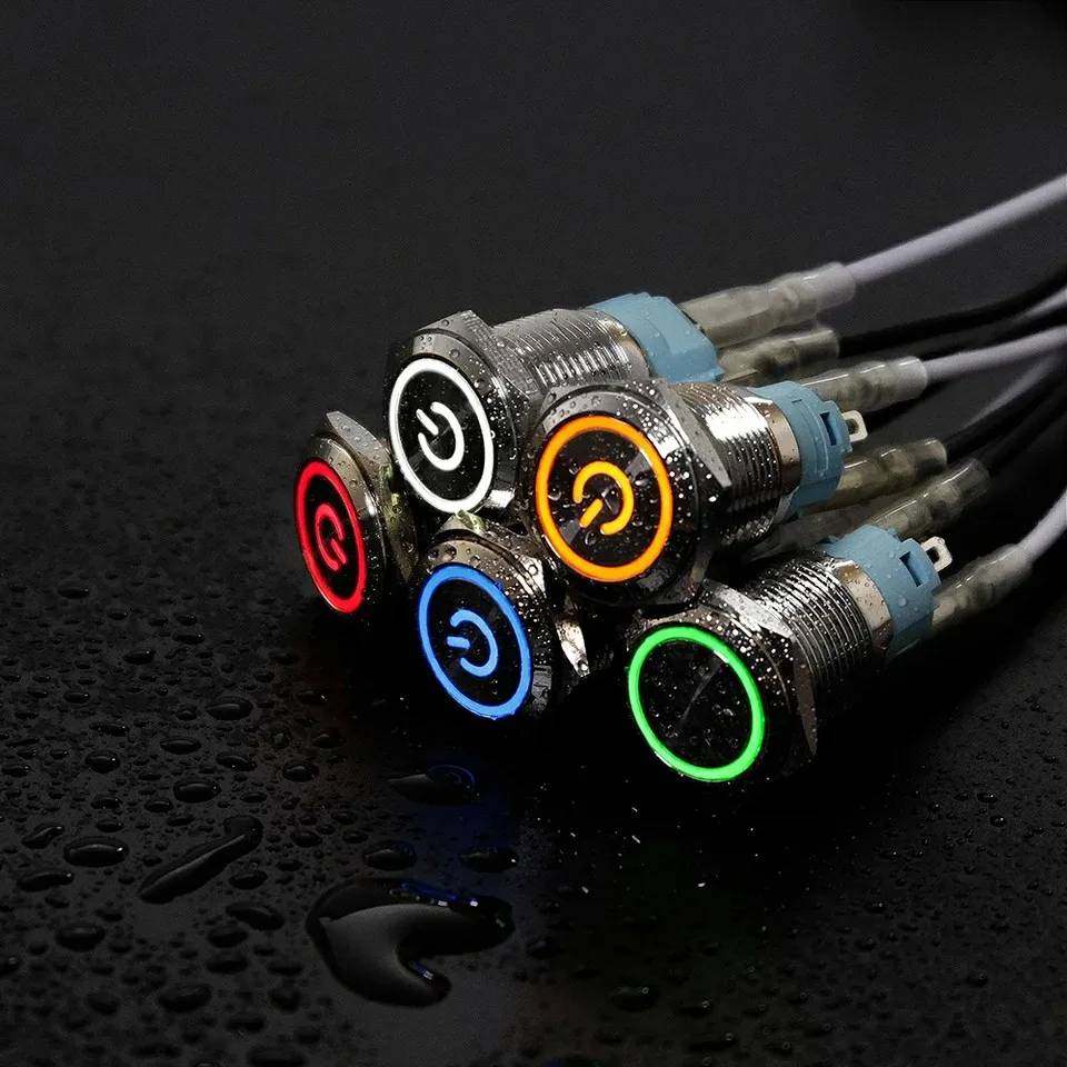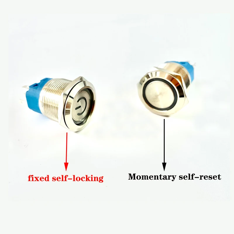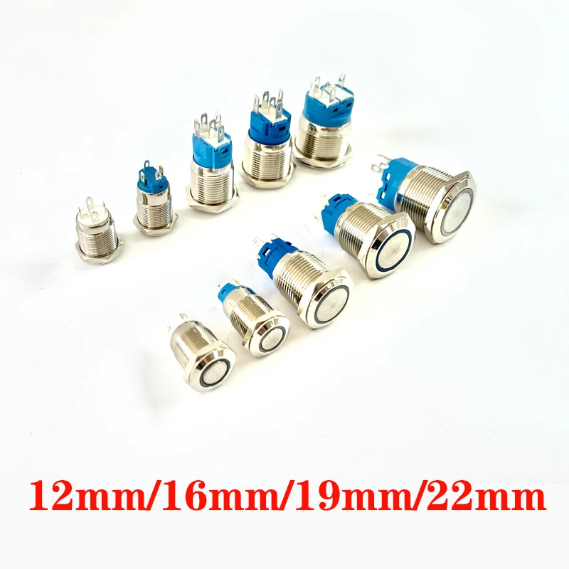 Металлический кнопочный переключатель 12161922 мм, переключатель питания двигателя автомобиля, 3 в, 5 В, 12 В, 24 В, 220 В, LDE светильник, мгновенная самоблокировка, водонепроницаемая кнопка