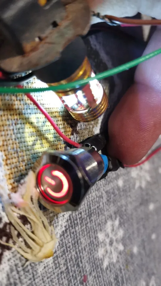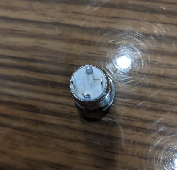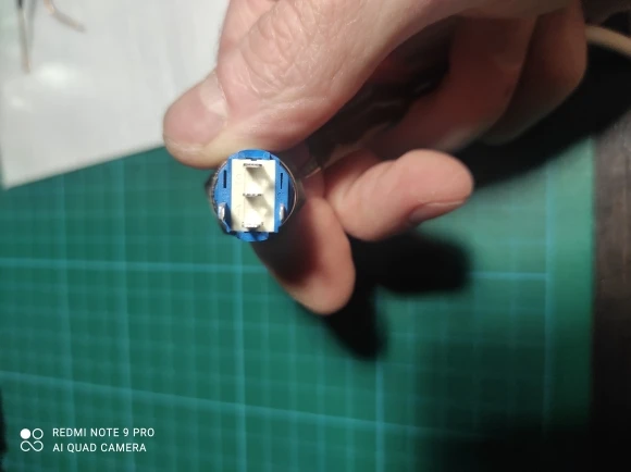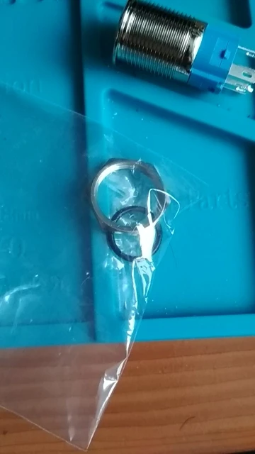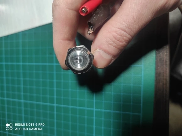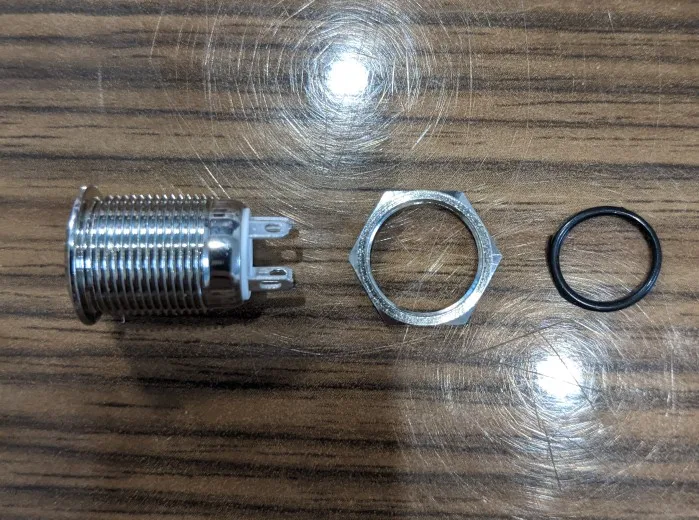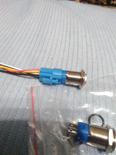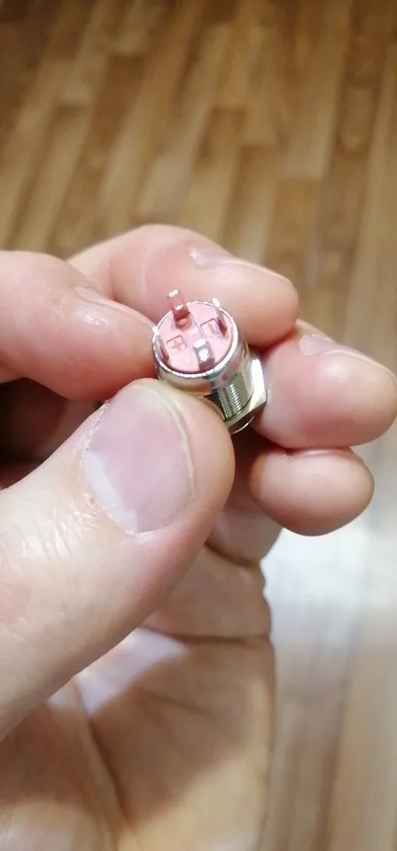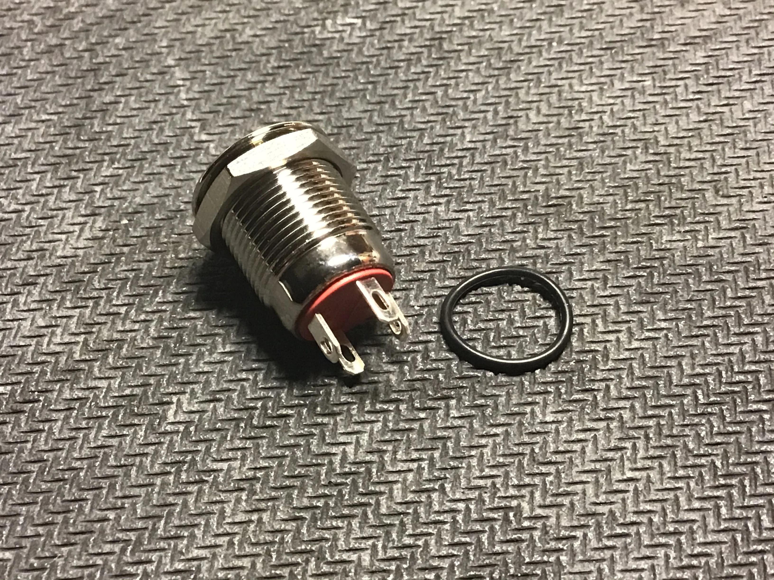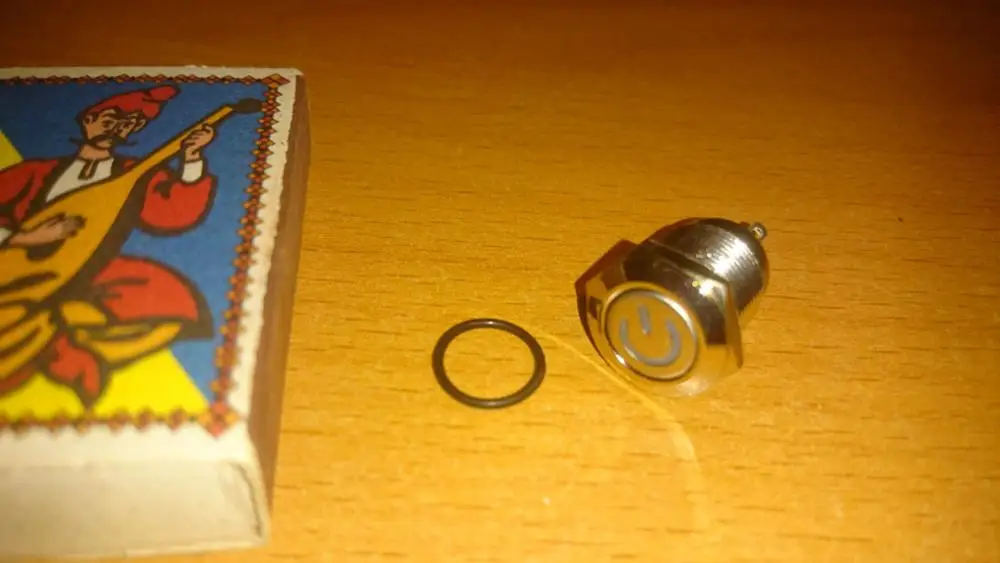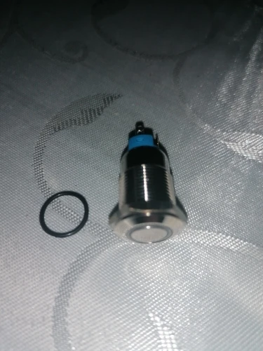 Огонек горит от 12 вольт, подключение: контакты 1 и 2, плюс и минус соответсвенно. Как я понял, можно через нее и 220 бросать, напряжение в описании - питание светодиода. У кнопки 3 свободных контакта: NO, NC и COM (общий). В комплекте гайка и прокладка.