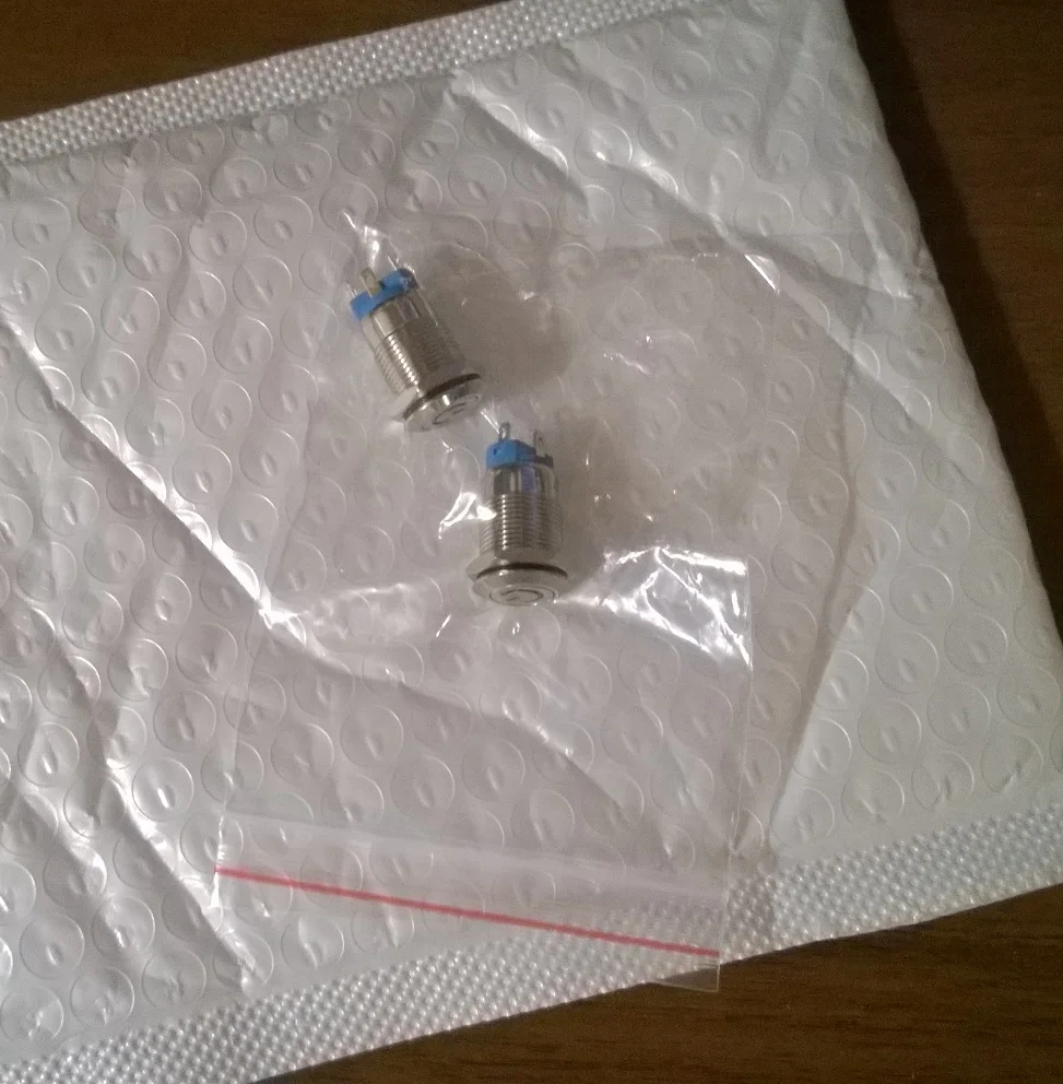 Доставка в потомат Пятерочки, 2 недели. Упаковка пупырка. Отличные кнопки! Светят умеренно ярко, не лупят светом, можно подавать более низкое напряжение для регулировки яркости, полярности не имеют.
