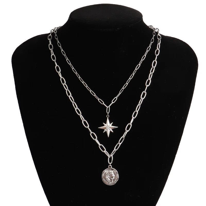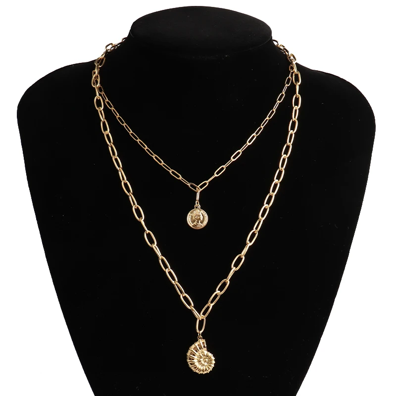Винтажное многослойное ожерелье, длинное ожерелье с кулоном, женско...