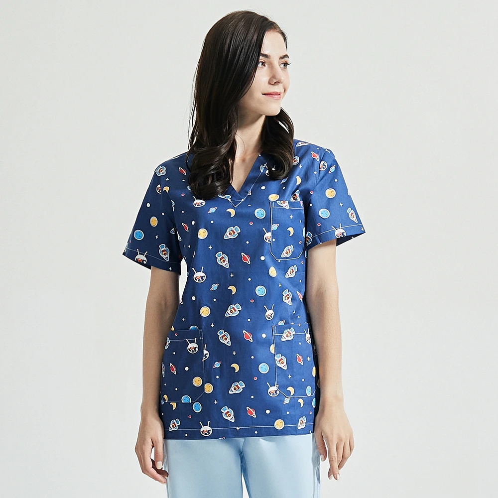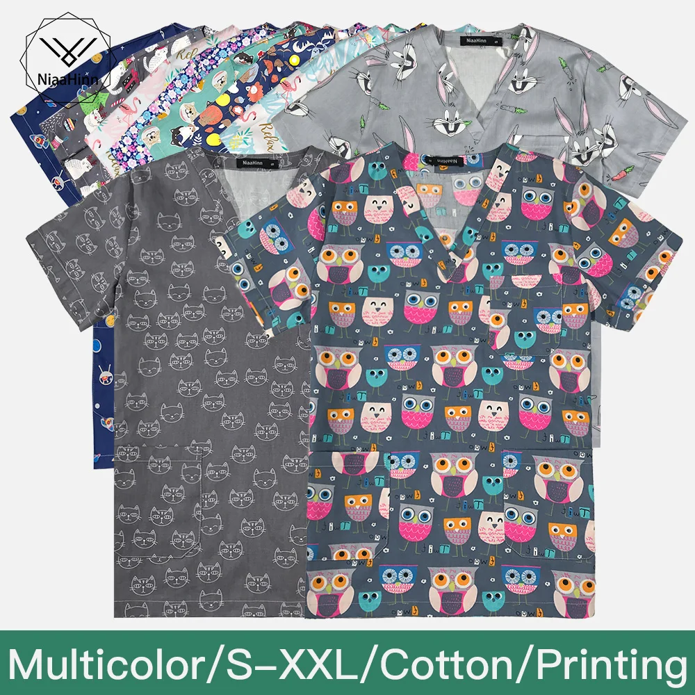 Медицинские медицинские скрабы, топы, мультяшный принт, хлопковый к...