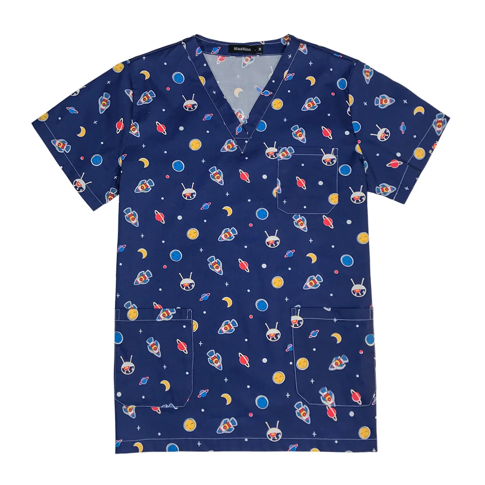 Униформа медсестры, униформа унисекс с мультяшным принтом и V-образ...