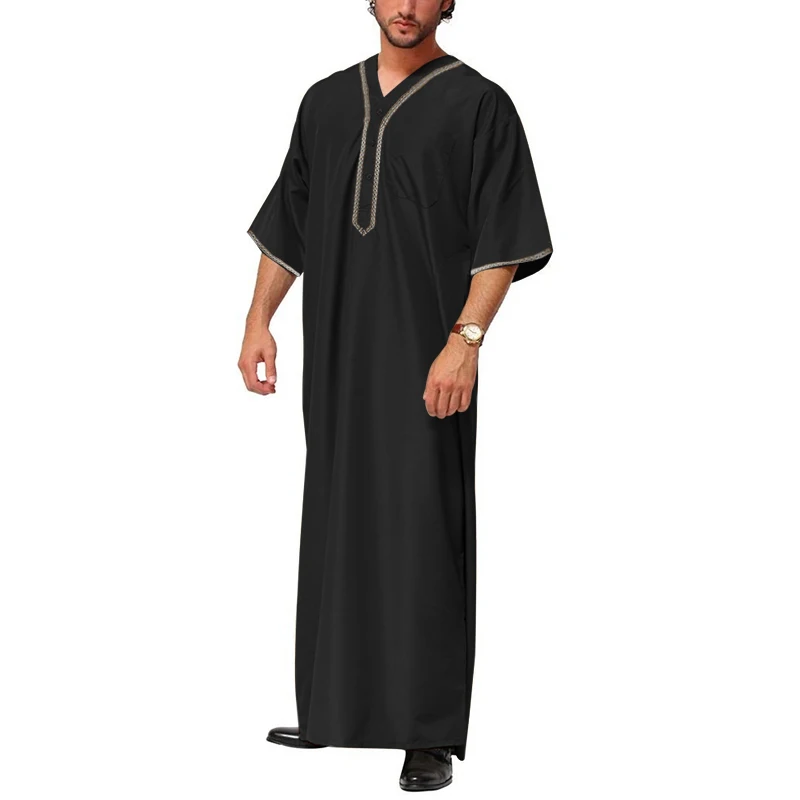 Кафтан Мужской винтажный в мусульманском стиле, с рукавом до локтя, с V-образным вырезом, с принтом юббы Тобе, однотонная Арабская одежда в стиле пэчворк, 5XL