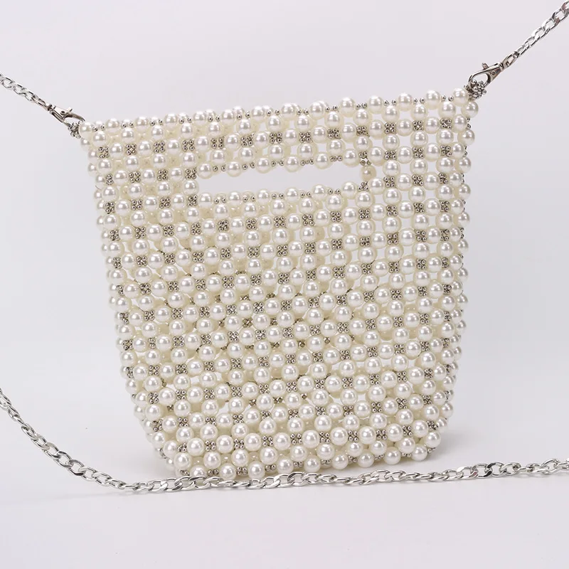 Дизайнерская жемчужные сумочки на плечо для женщин с бусинами, изящная белая сумочка кросс-боди с жемчугом, роскошный вечерний клатч, дамская сумочка, ручная работа, 2020