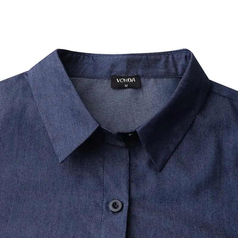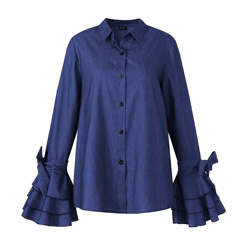Женская Джинсовая блузка, с отложным воротником, однотонная, винтажная, с рукавом-пагодой, свободного покроя, осень 2021