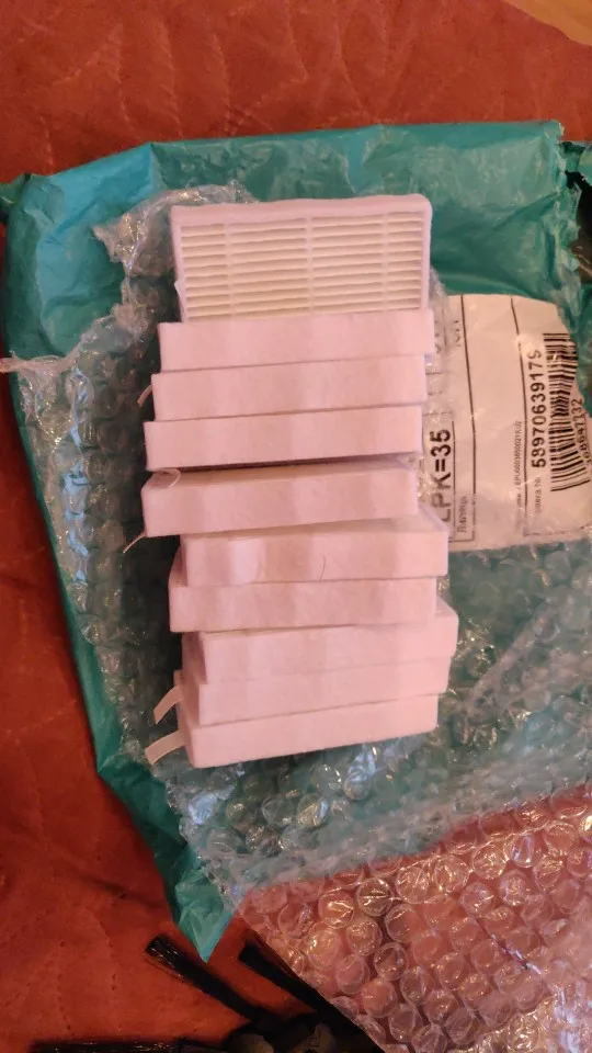 доставили за 8 дней в почтомат рядом с домом (dpd). комплектность в порядке, фильтры по ощущениям на пару мм меньше, но в целом стоят хорошо. а вот тряпочки больше, если сверху плотно натянуть, внизу края выпирают на 5-7 мм, но это может и к лучшему, по плотности тоньше оригинальных. щеточек левых правых поровну ( по 6 ), для чего липучки пока не понял. покупкой доволен