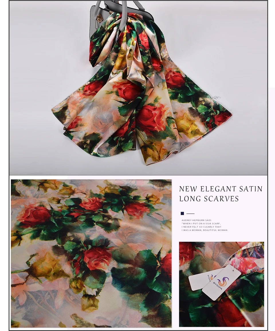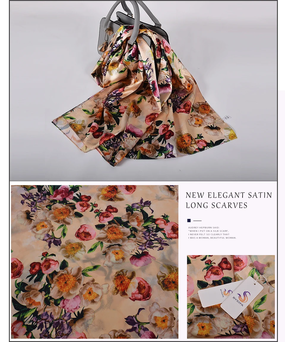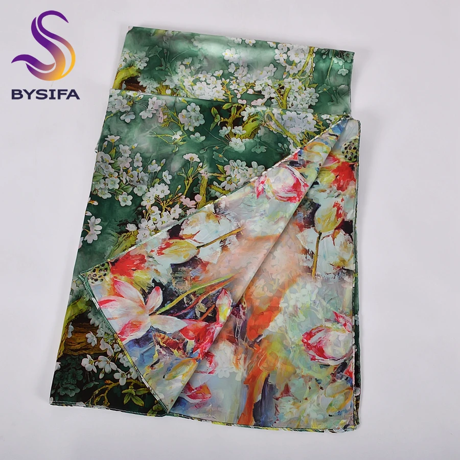 Шелковый шарф BYSIFA, женский платок, новый дизайн магнолии, дамские двухсторонние длинные шарфы с принтом, бежевый, розовый, хиджаб 160*70 см