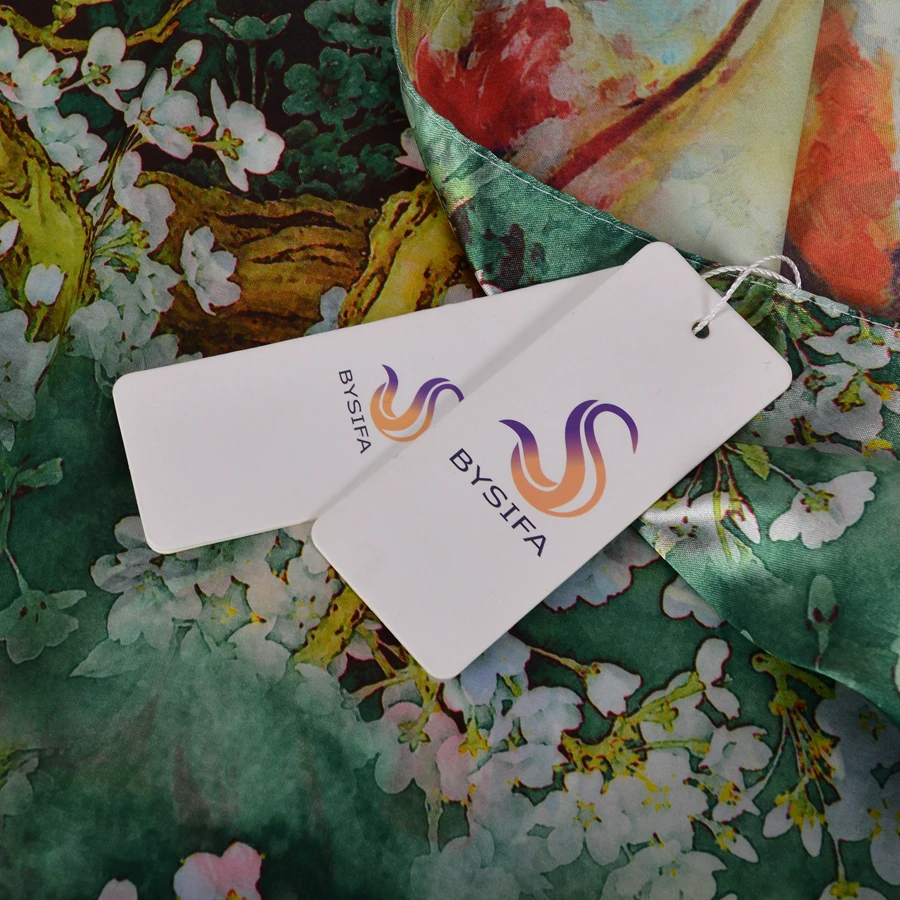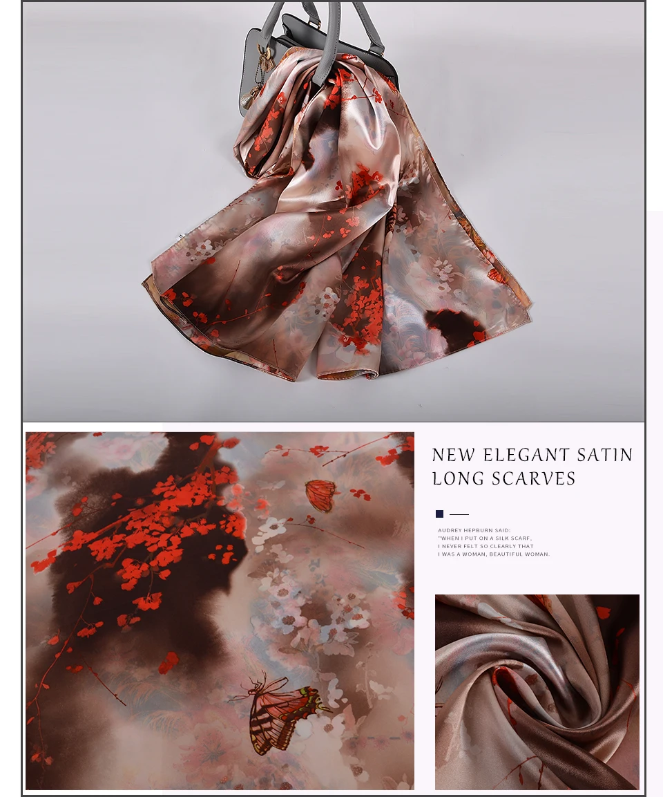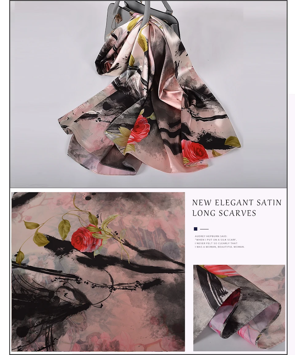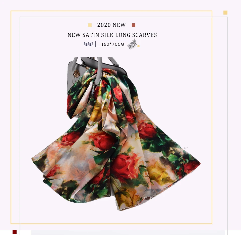 Шелковый шарф BYSIFA, женский платок, новый дизайн магнолии, дамские двухсторонние длинные шарфы с принтом, бежевый, розовый, хиджаб 160*70 см
