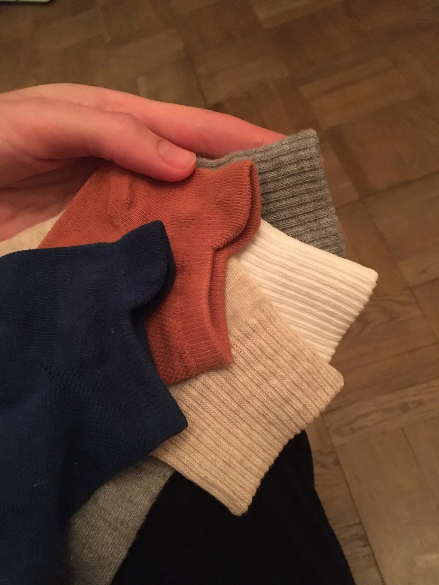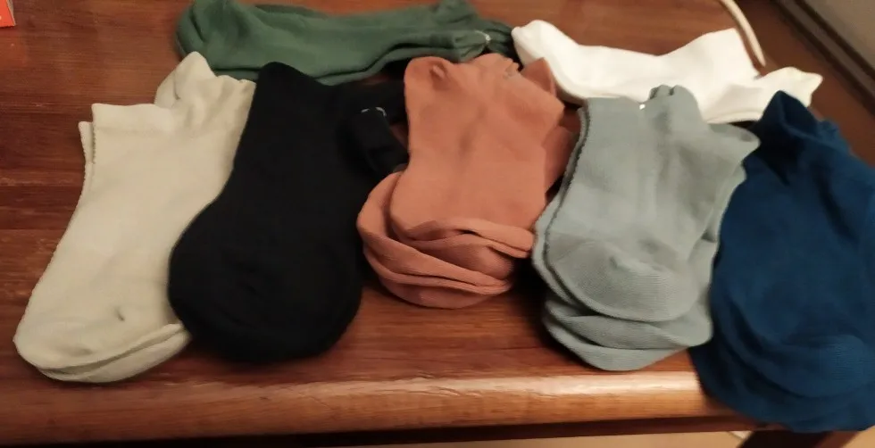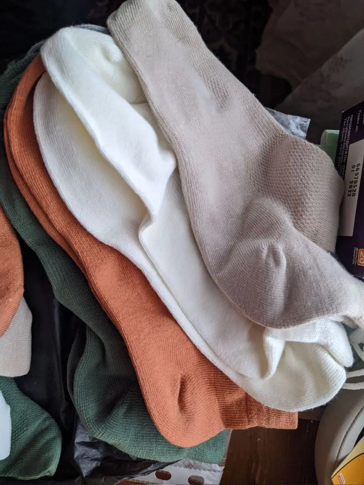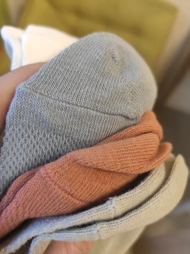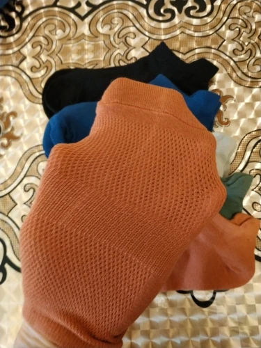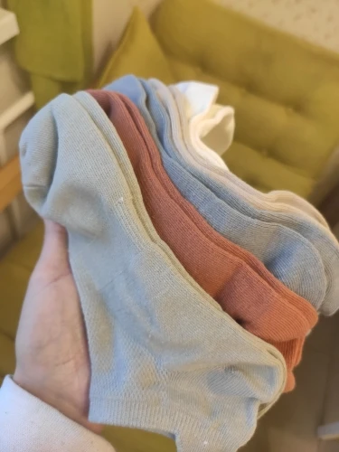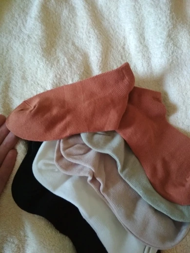 Из пяти пар я получила только 2 той модели, что заказывала. Да и цвет одной из них не соответствовал фотографии. Думала, что рыжие будут больше в коричневый, а не этот красно-кирпичный. Те две пары, что и заказывала ещё похожи на хлопок, но в трёх, что не соответствовали заказу, хлопка явно мало, если есть. Нога в них потеет и постоянно ощущение, что ноги мокрые(